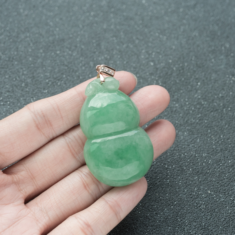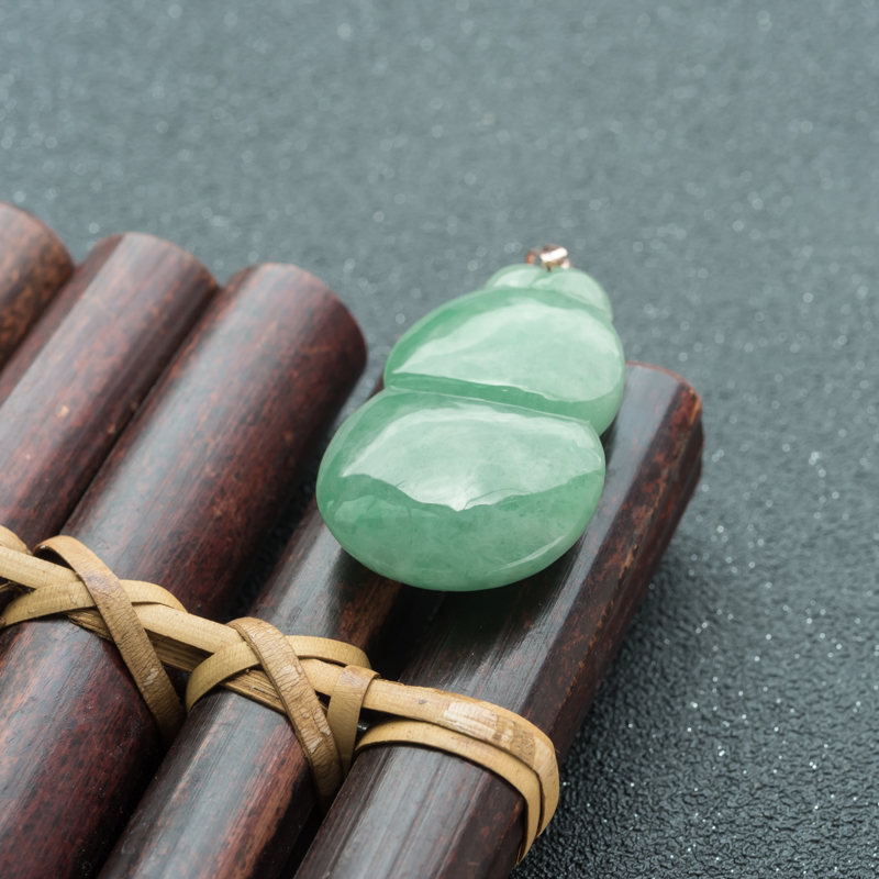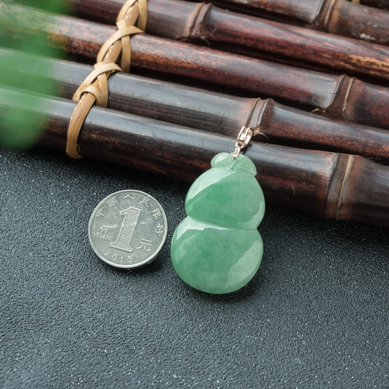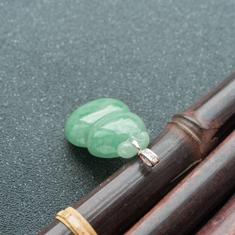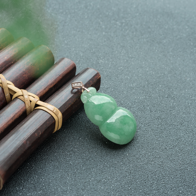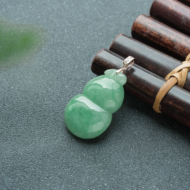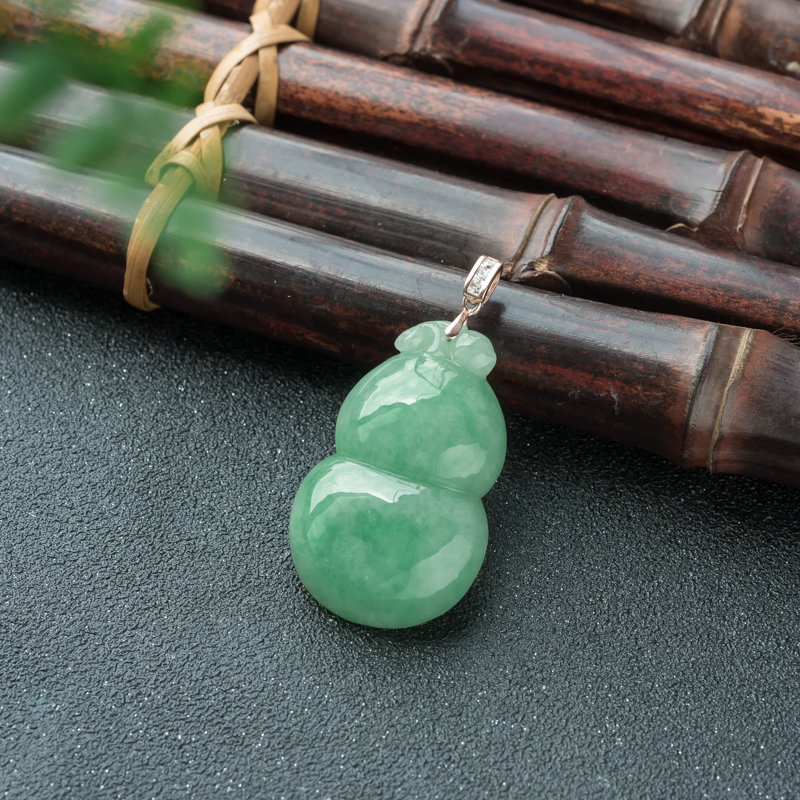 • 银镶糯冰种豆绿翡翠福禄吊坠