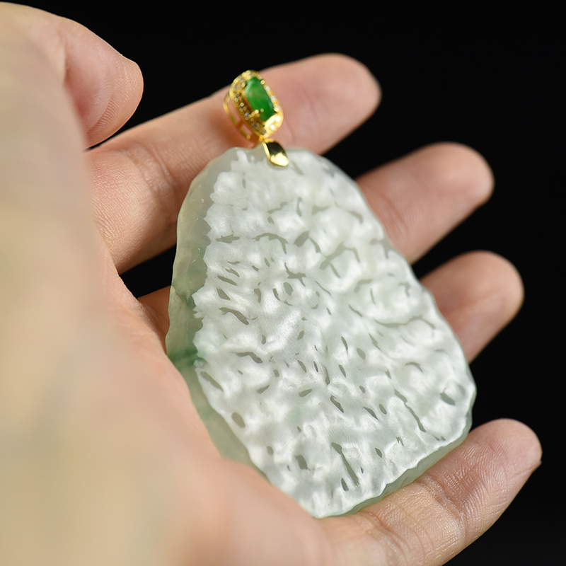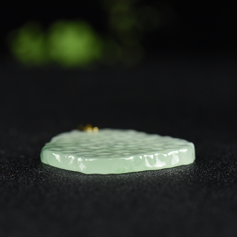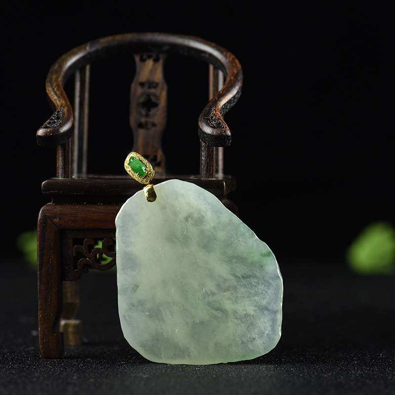 • 18k糯冰种飘翠翡翠无事牌吊坠