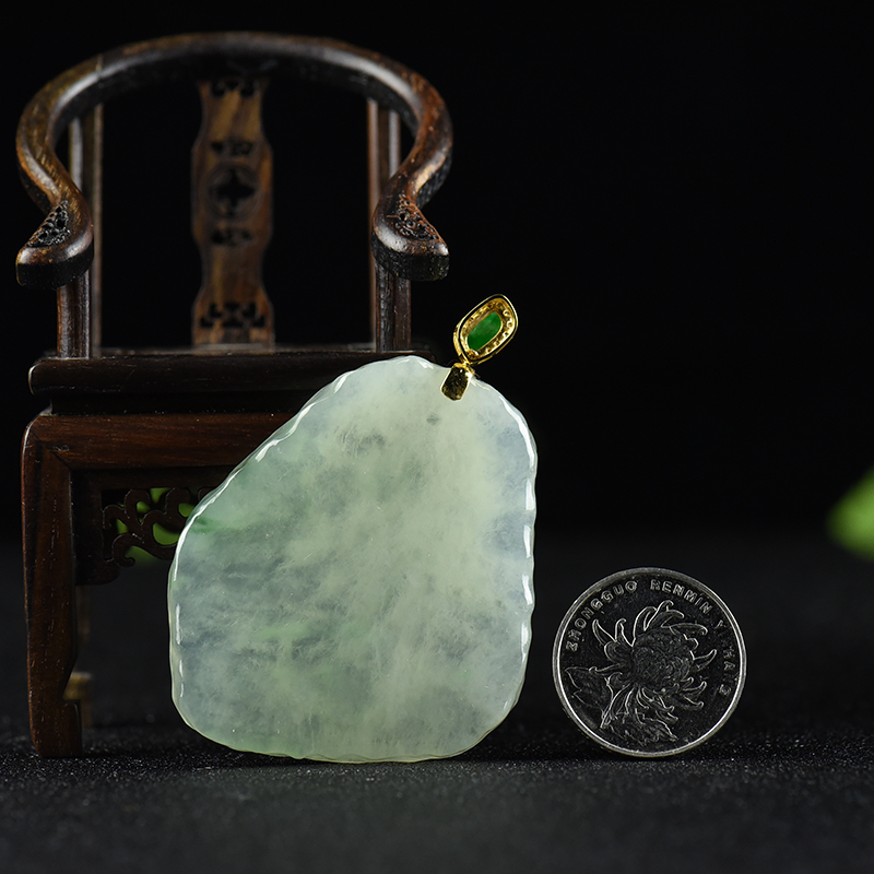 • [名  称] 18k糯冰种飘翠翡翠无事牌吊坠