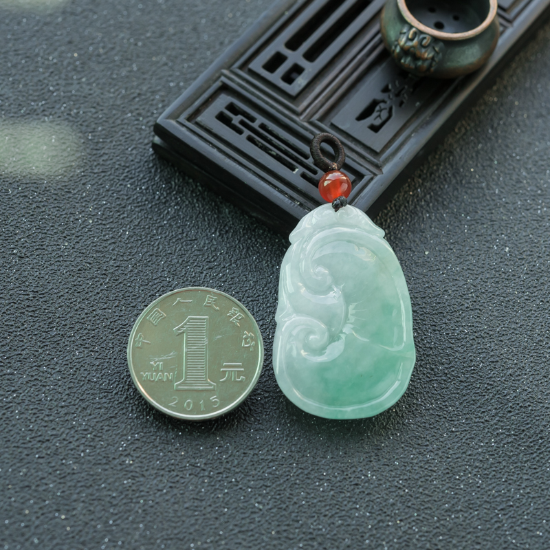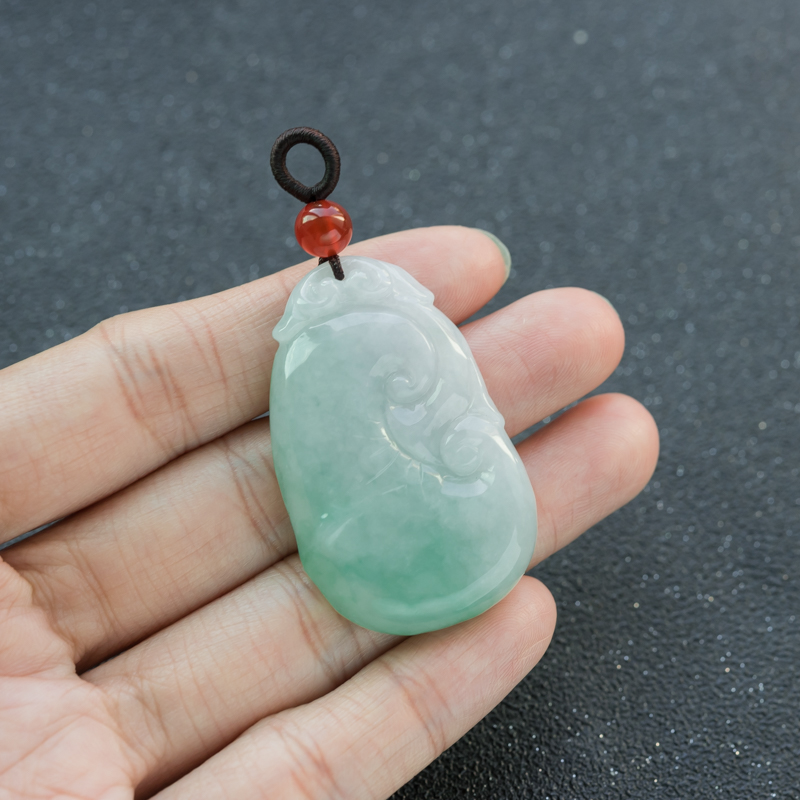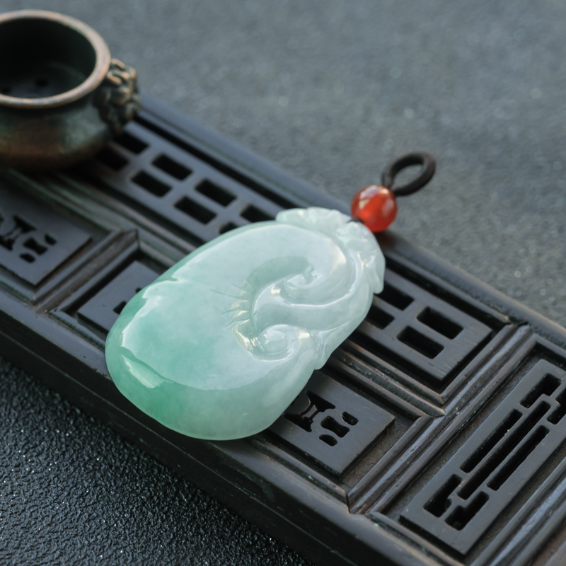 • 糯冰种飘翠翡翠如意吊坠