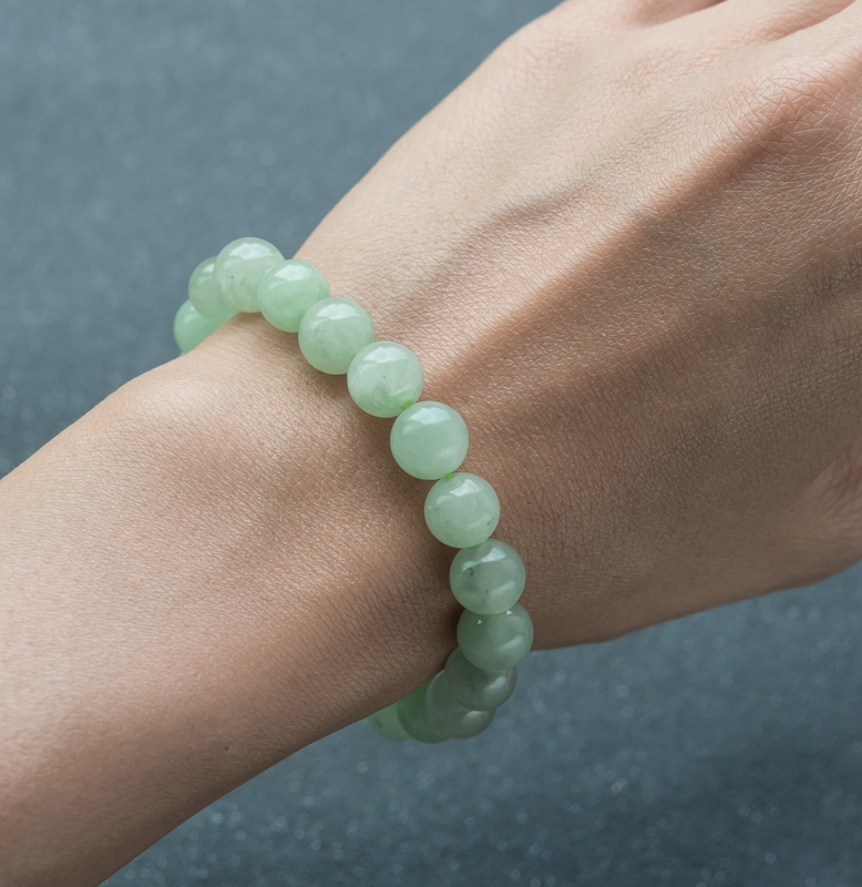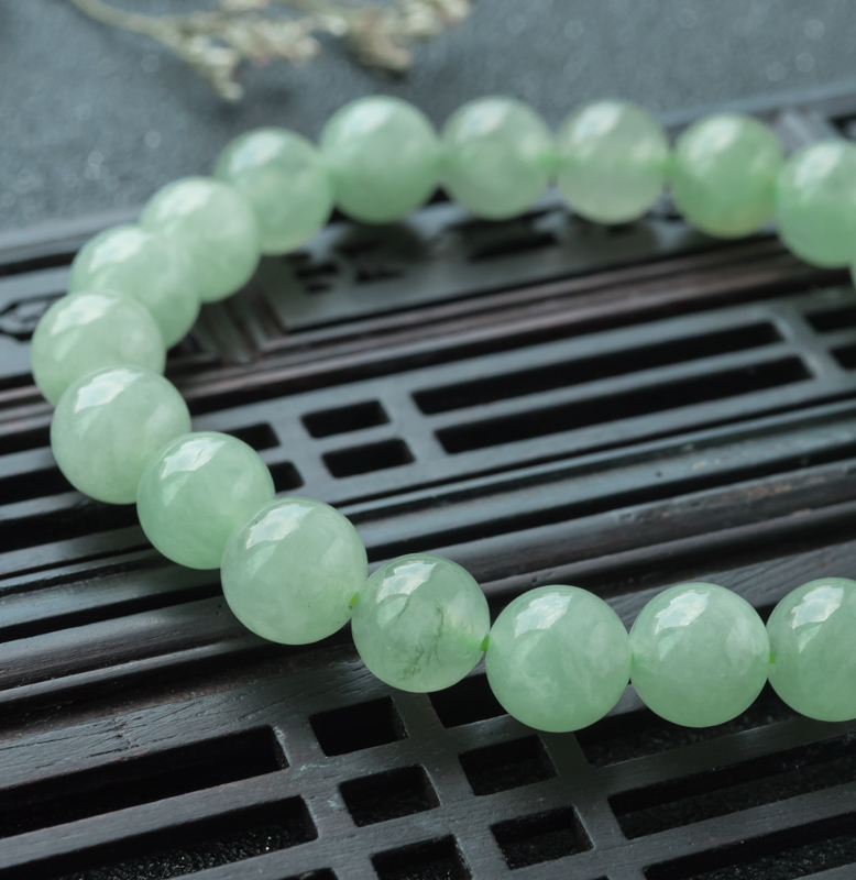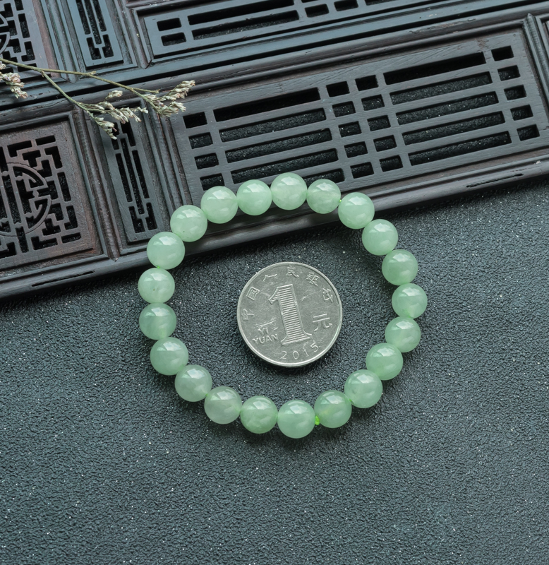 • 8.5mm糯冰种浅绿翡翠单圈手串