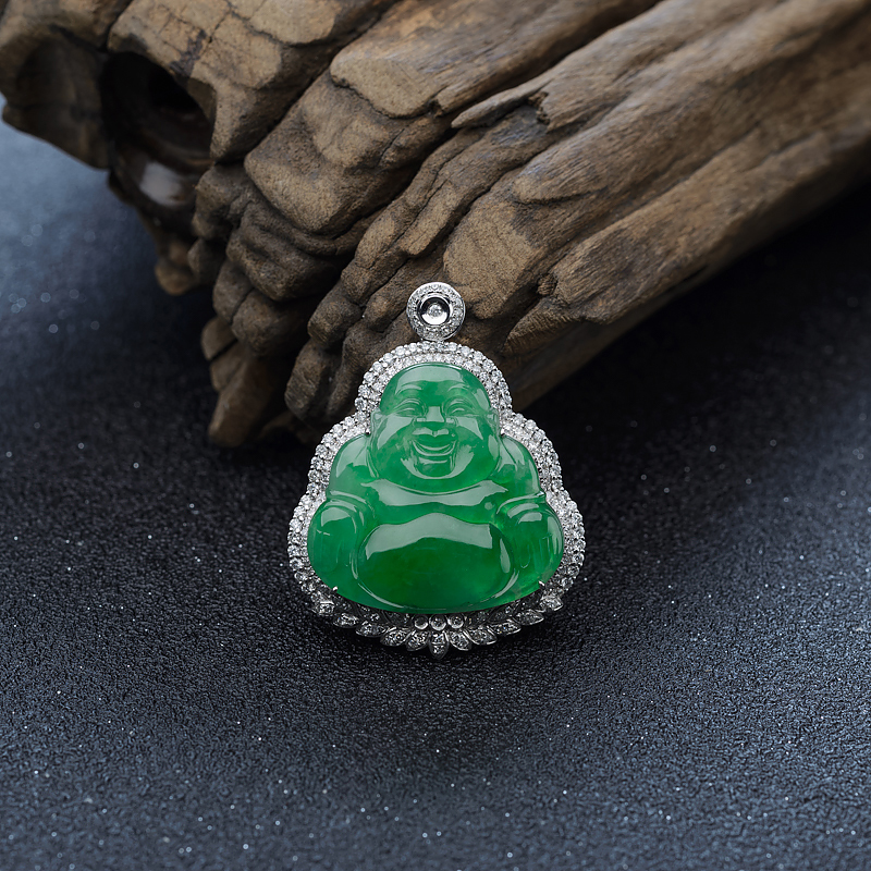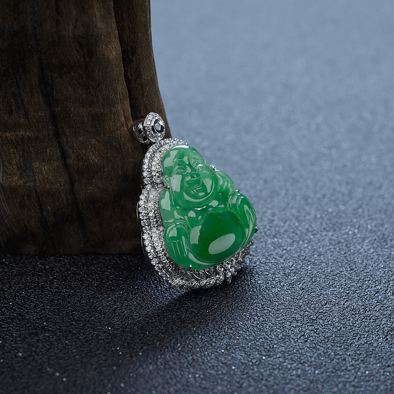 • [名  称] 18K糯冰种阳绿翡翠弥勒佛吊坠