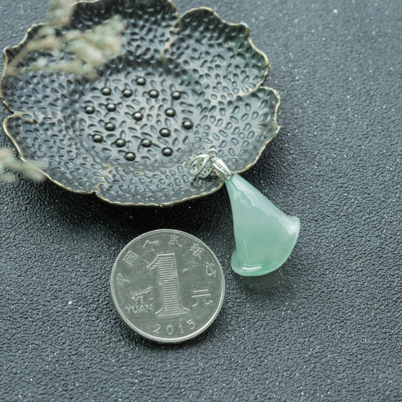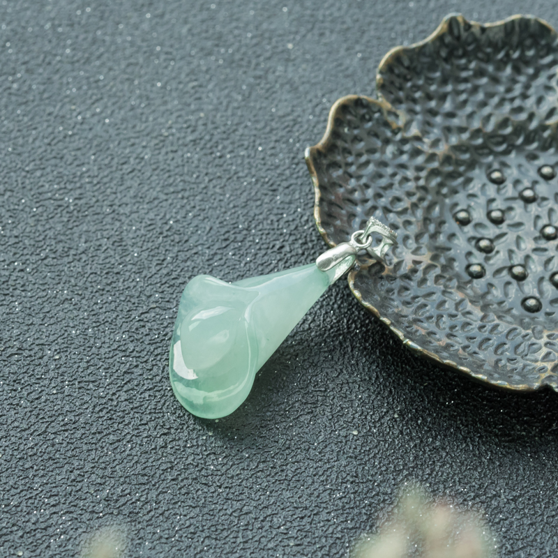 • [名  称] 银镶糯冰种浅绿翡翠百年好合吊坠