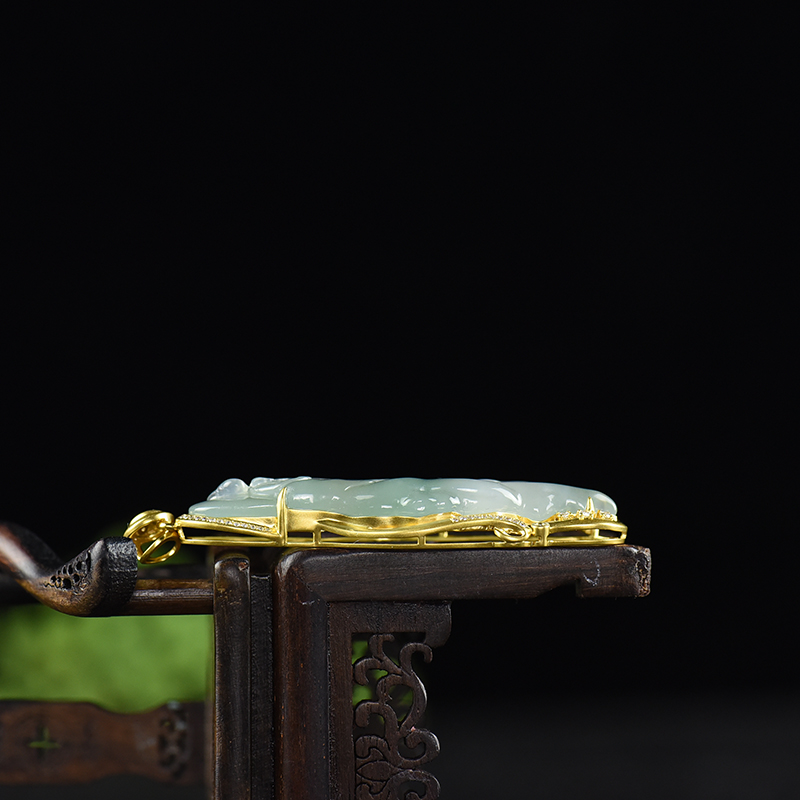 • 18k金镶钻冰糯种飘花翡翠悟道吊坠