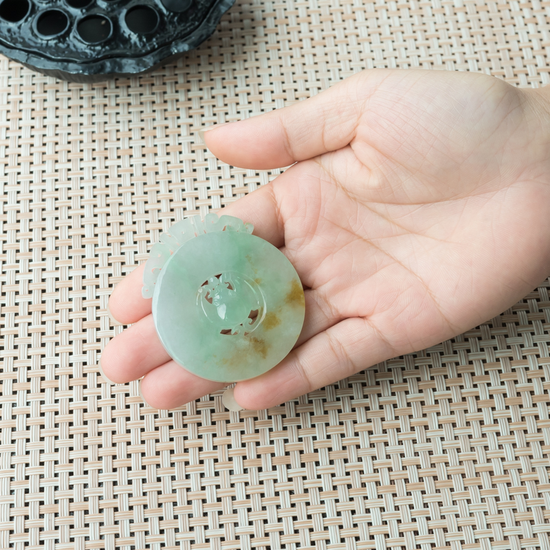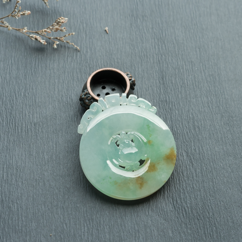 • 糯冰种飘黄翡翡翠福在眼前吊坠