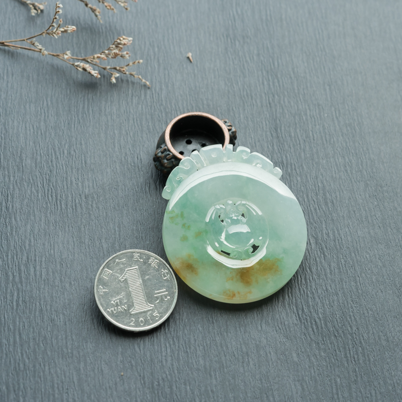 • [名  称] 糯冰种飘黄翡翡翠福在眼前吊坠