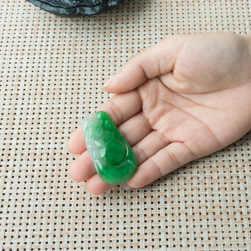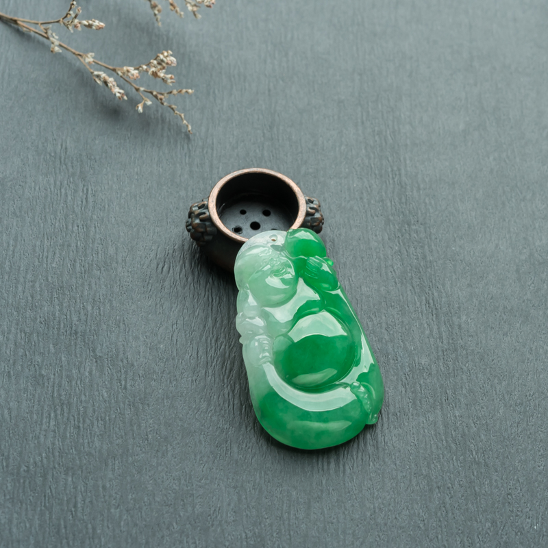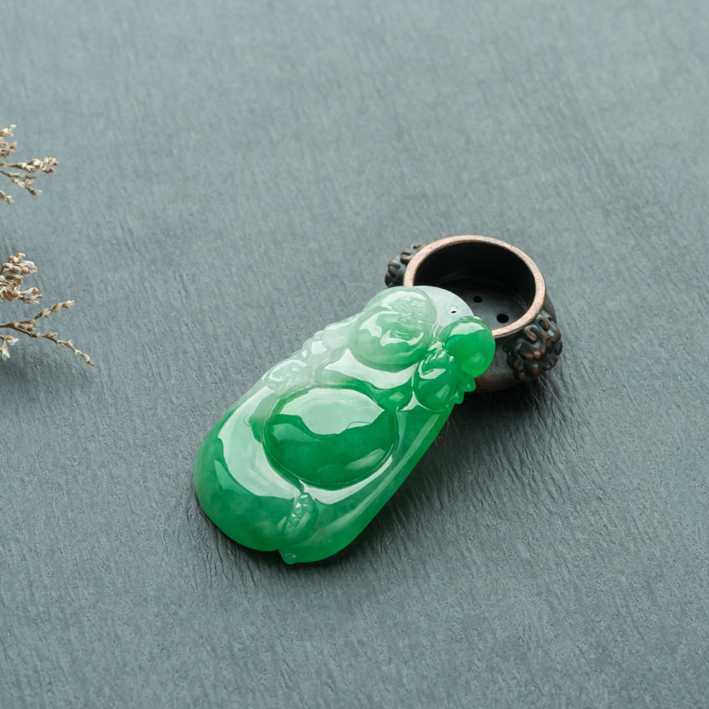 • 糯冰种翠绿翡翠弥勒佛吊坠
