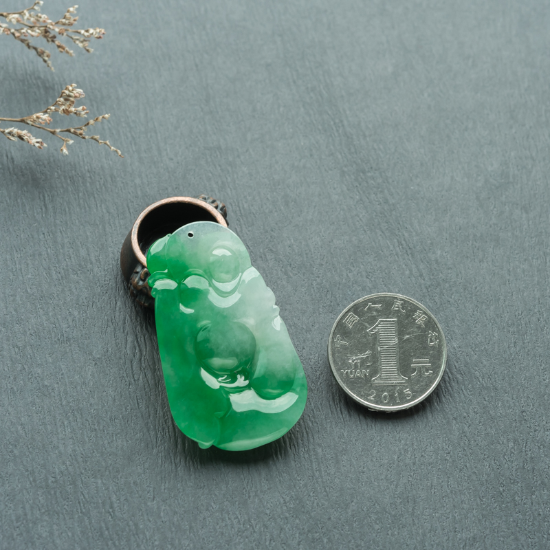 • [名  称] 糯冰种翠绿翡翠弥勒佛吊坠