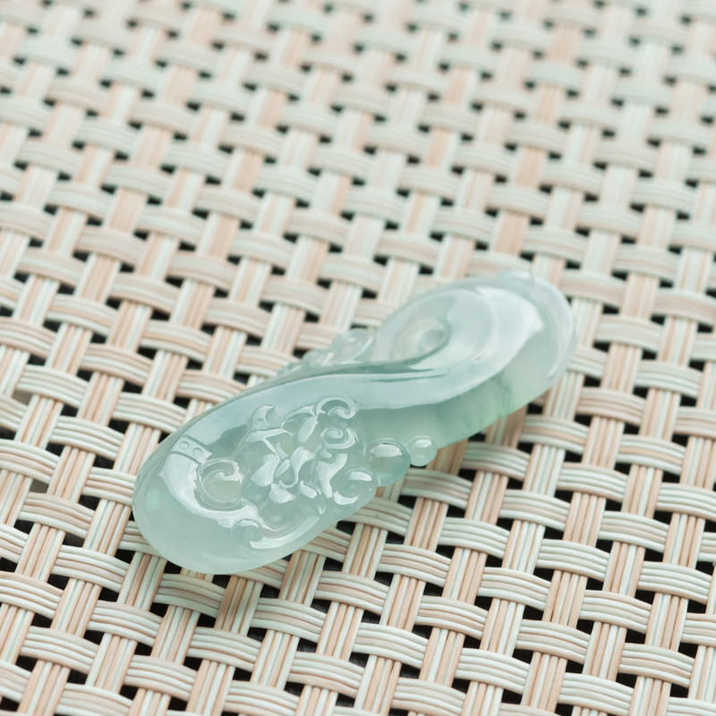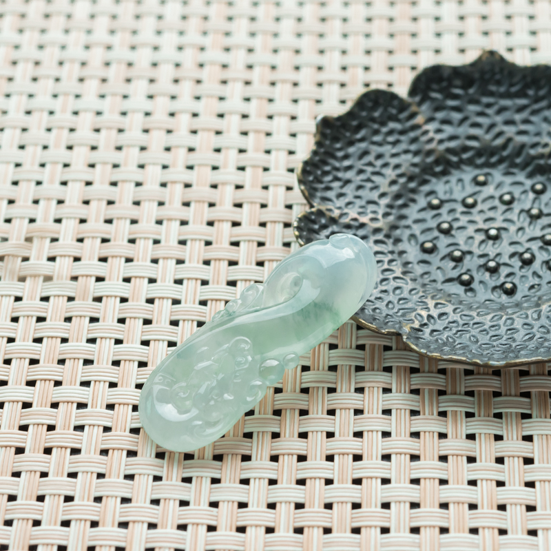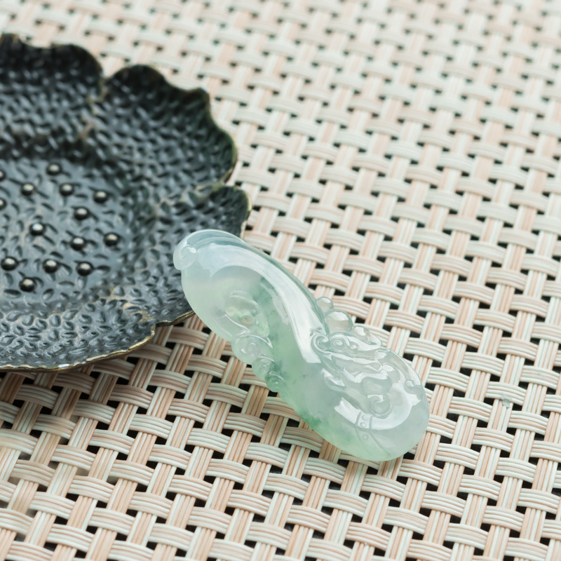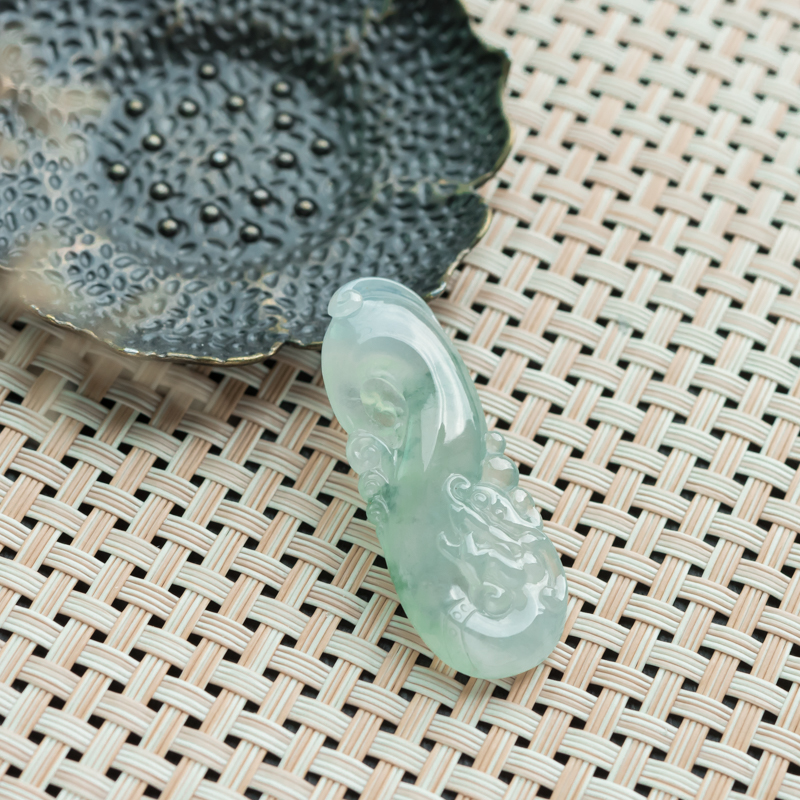 • 糯冰种飘花翡翠飞龙在天吊坠
