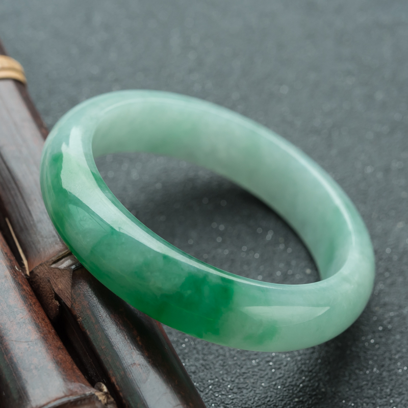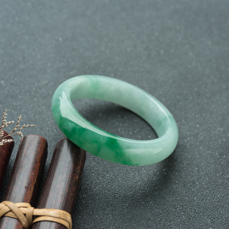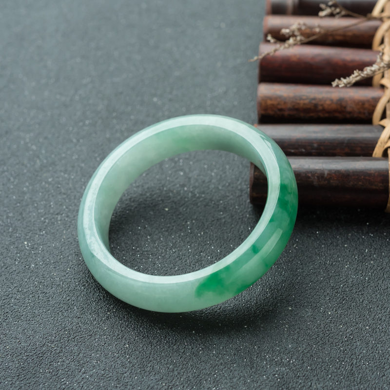 • 56.5mm糯冰种飘翠翡翠平安镯
