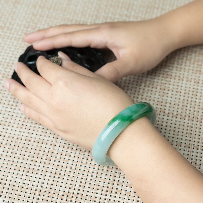• [名  称] 56.5mm糯冰种飘翠翡翠平安镯