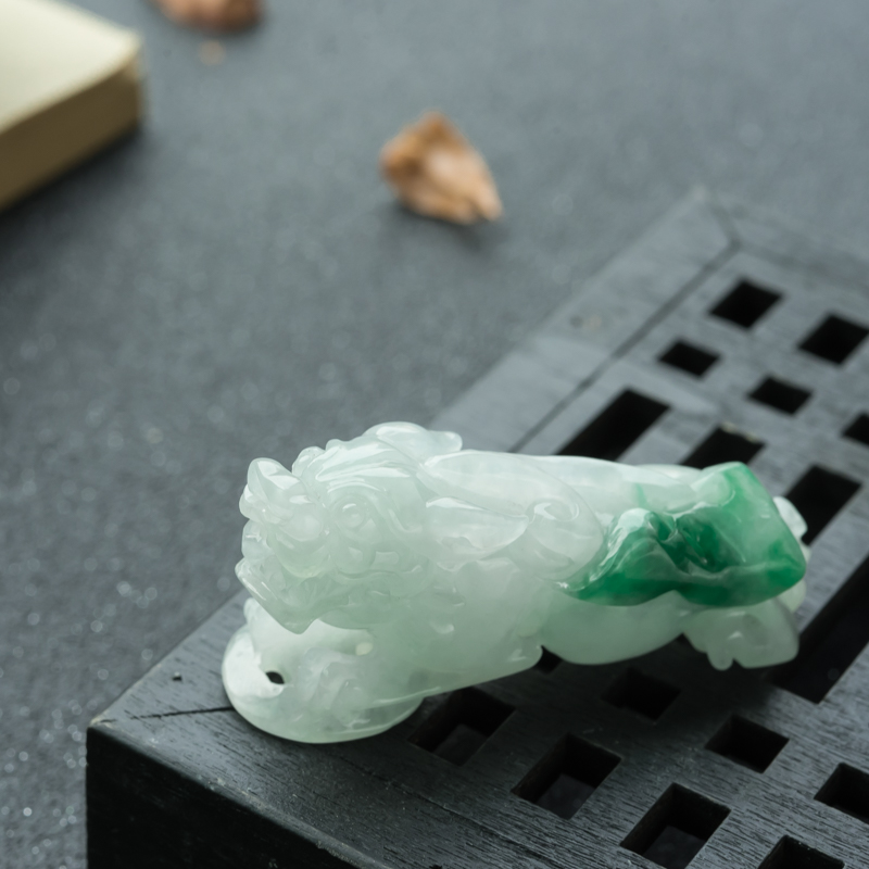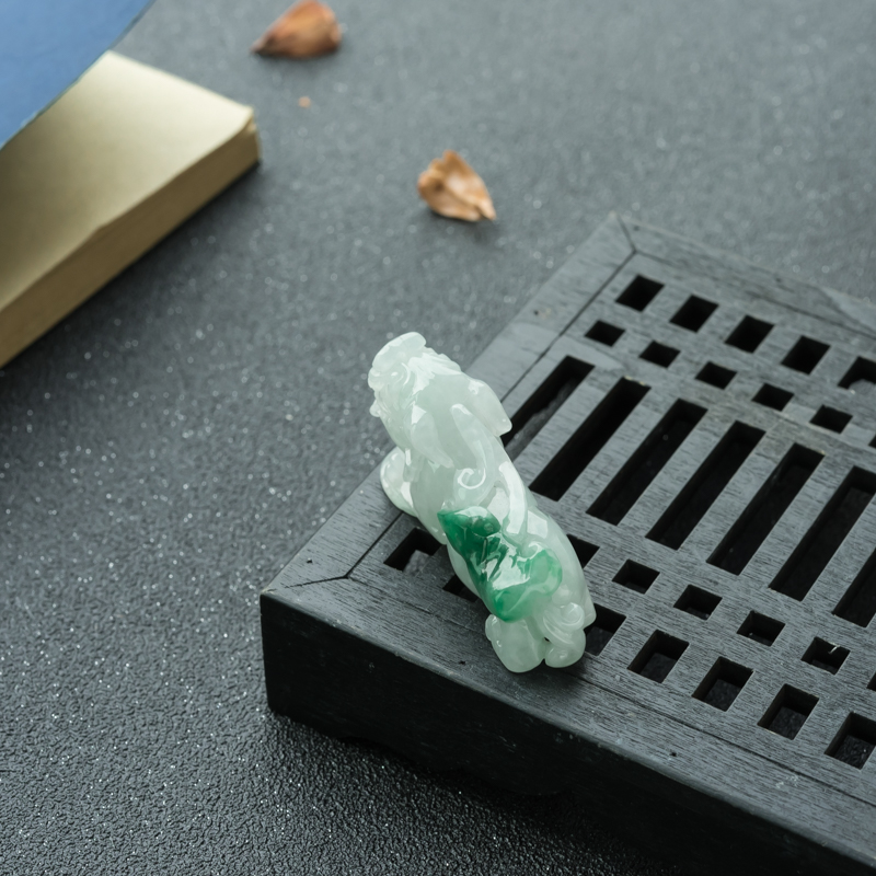 • 糯冰种飘翠翡翠貔貅吊坠