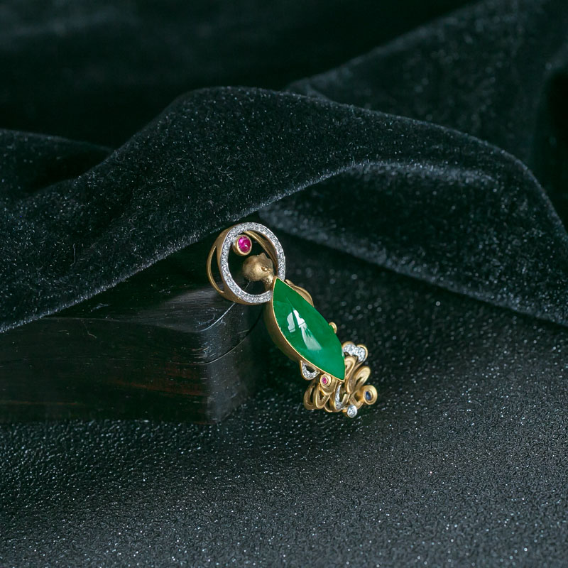 为了让珠宝的价值得到更大程度的体现,每一个作品都是根据料子本身做专业的设计,让每件作品都有灵魂。设计好以后会根据设计创意做专业的镶嵌或雕刻,确保每个接口都严丝合缝,每一刀都流畅自如