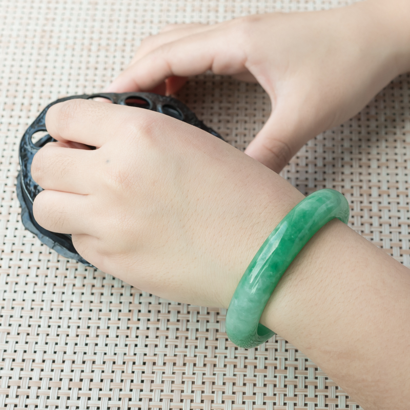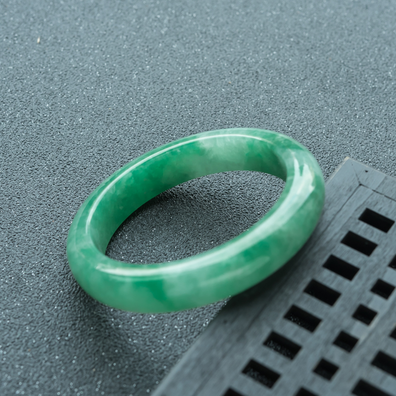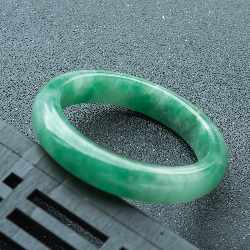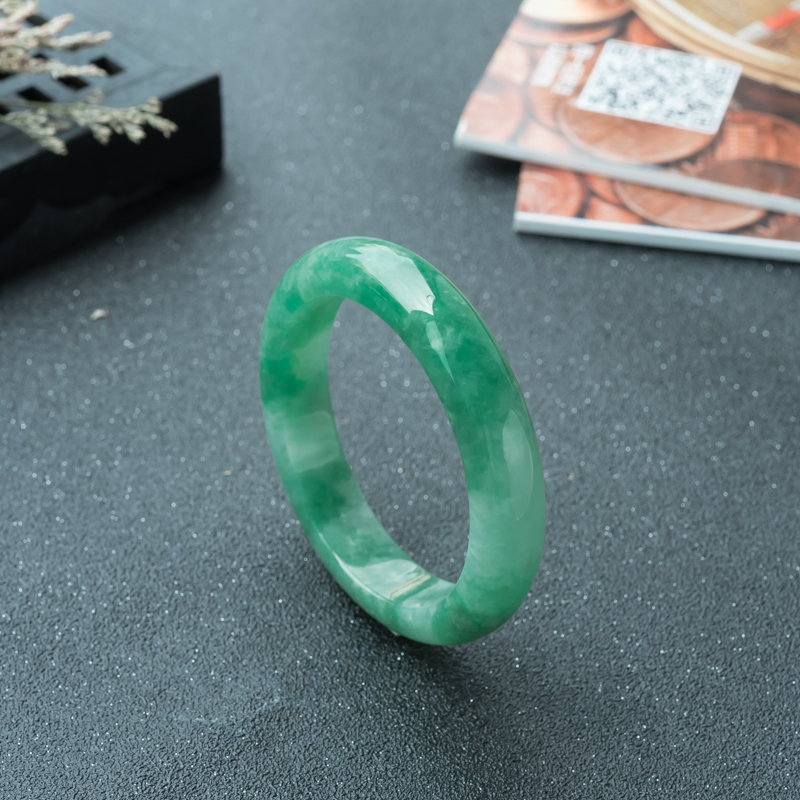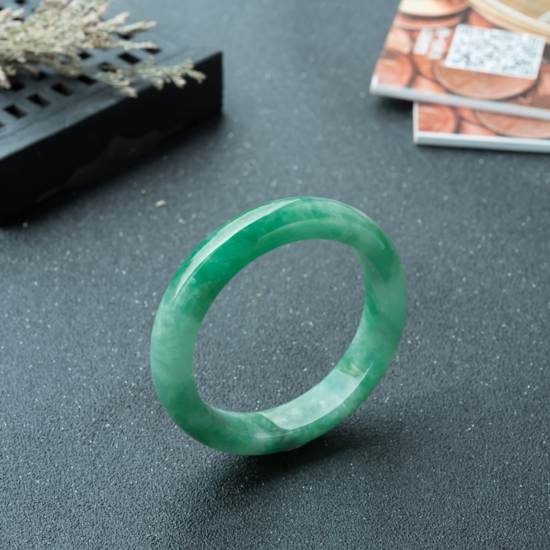 • 54.5mm糯冰种翠绿翡翠平安镯