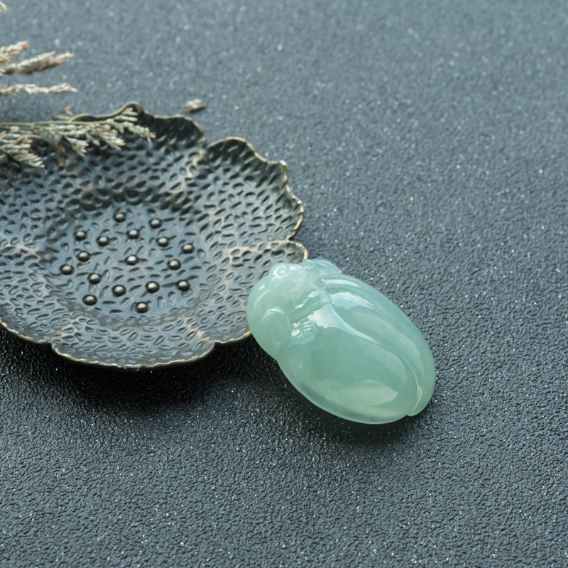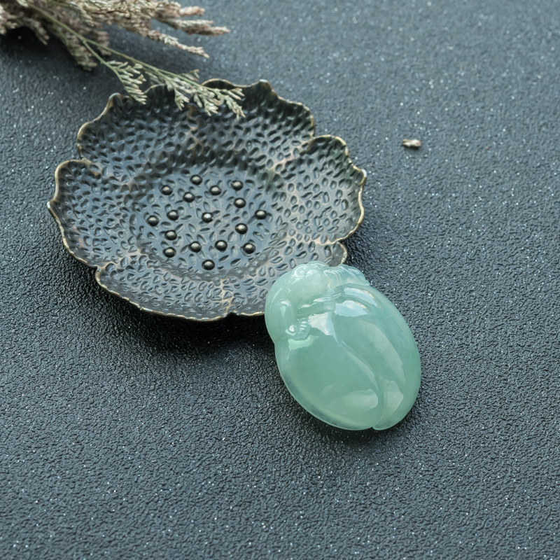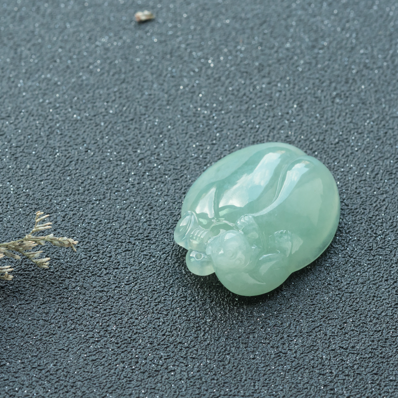• 糯冰种晴水翡翠灵猴献寿吊坠