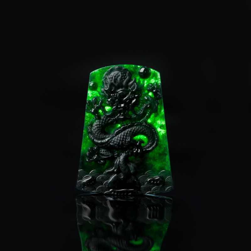 • [名  称] 糯冰种墨翠飞龙在天吊坠