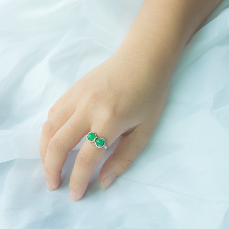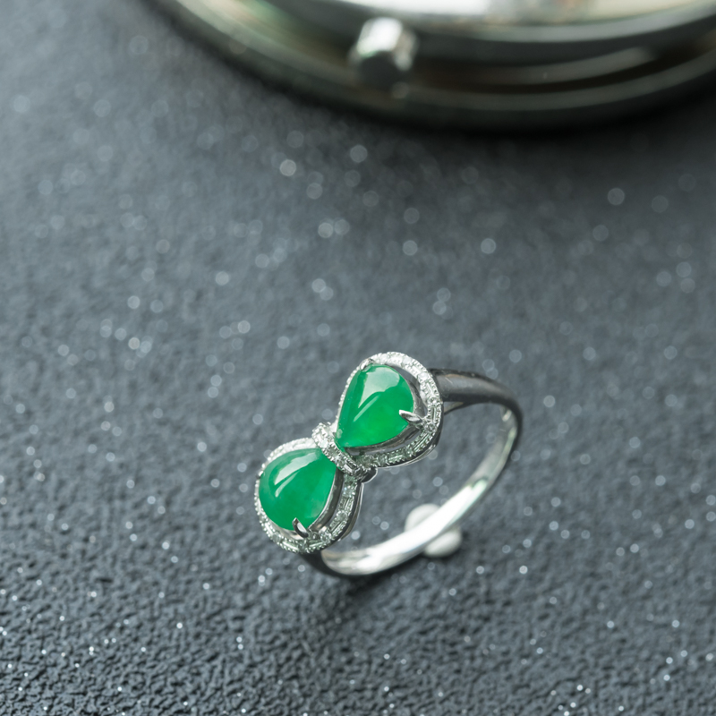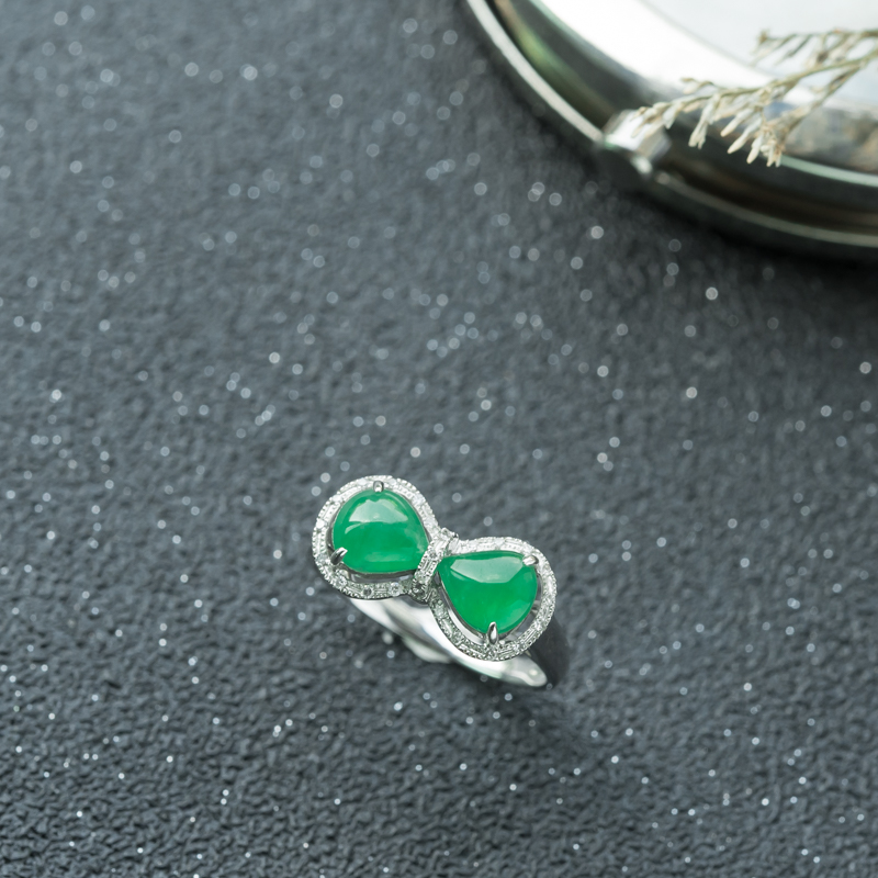 • 18K糯冰种翠绿翡翠戒指