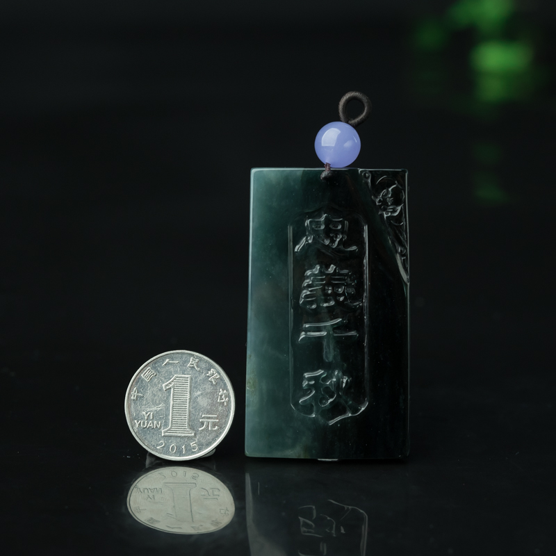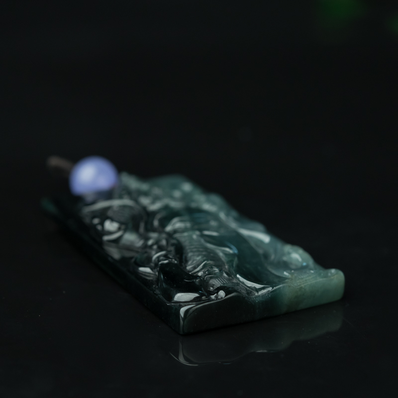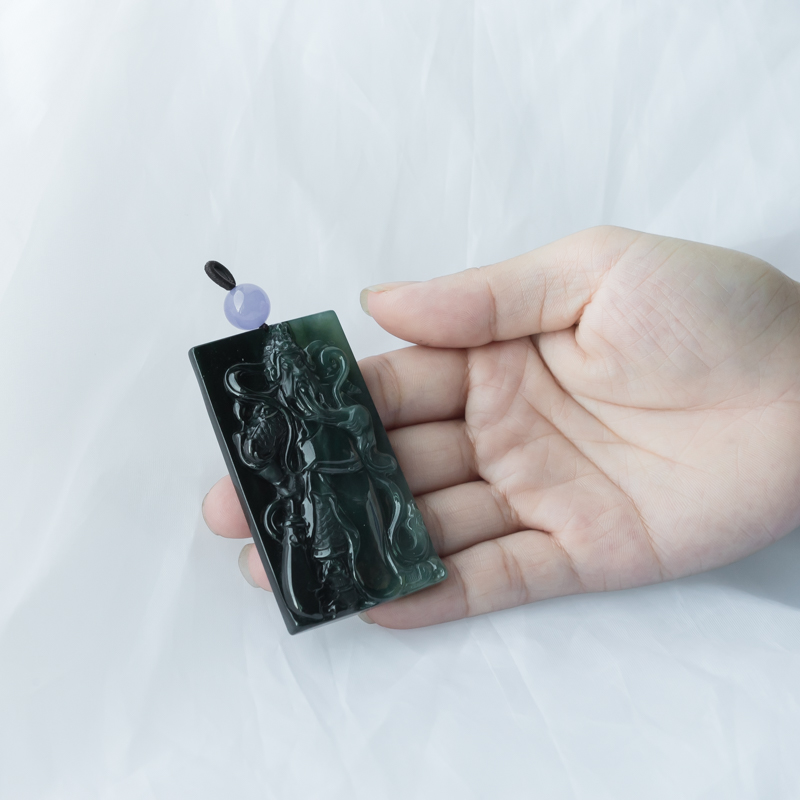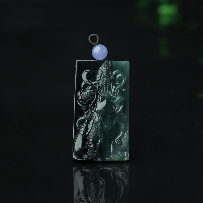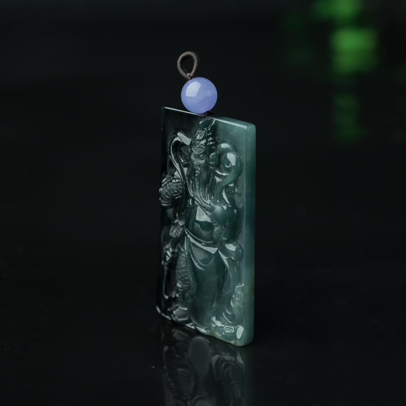 • [名  称] 糯冰种蓝水翡翠关公吊坠
