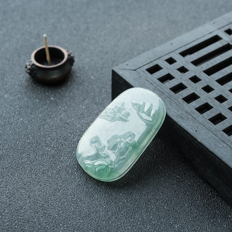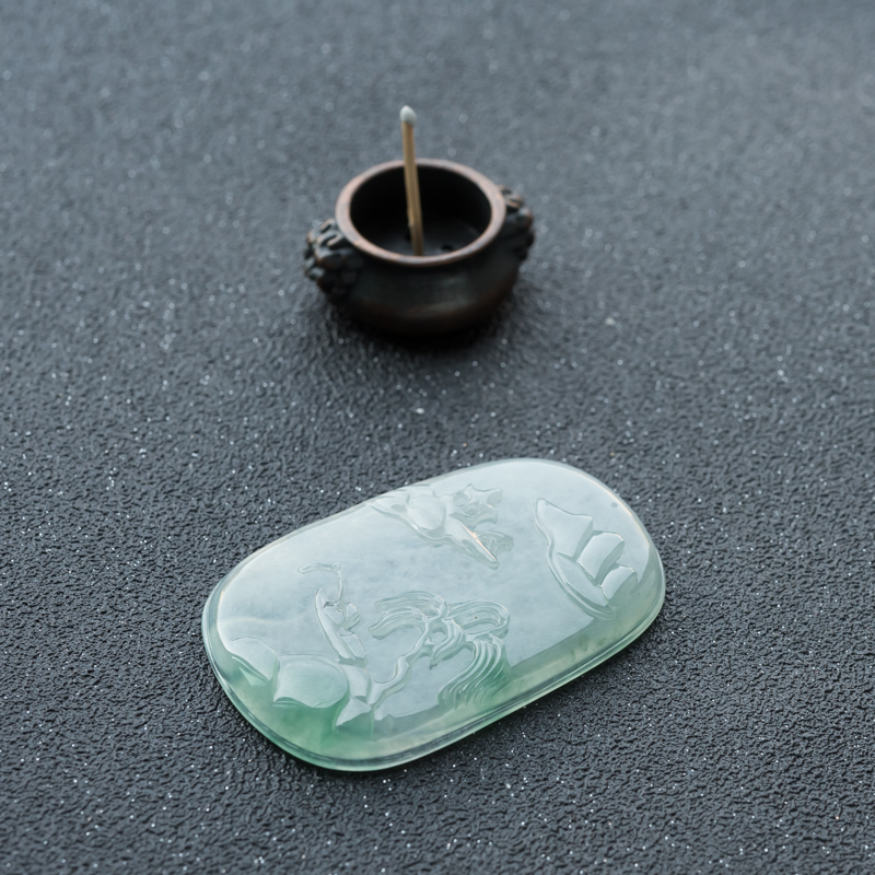 • 糯冰种飘翠翡翠独钓寒江吊坠