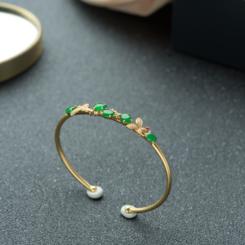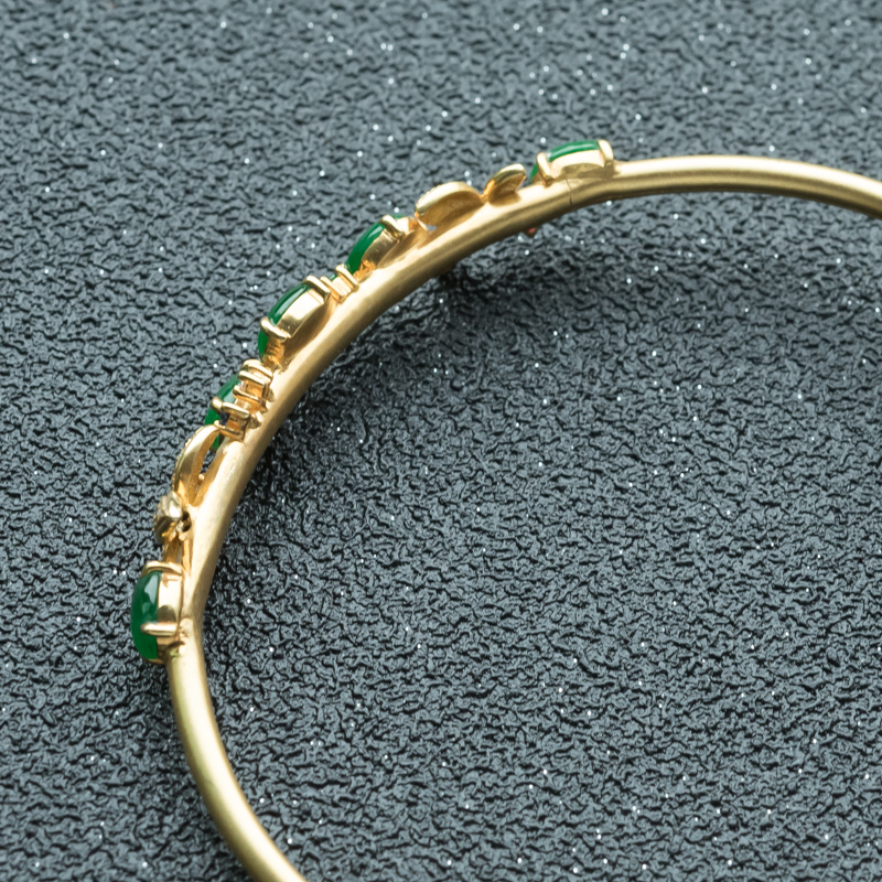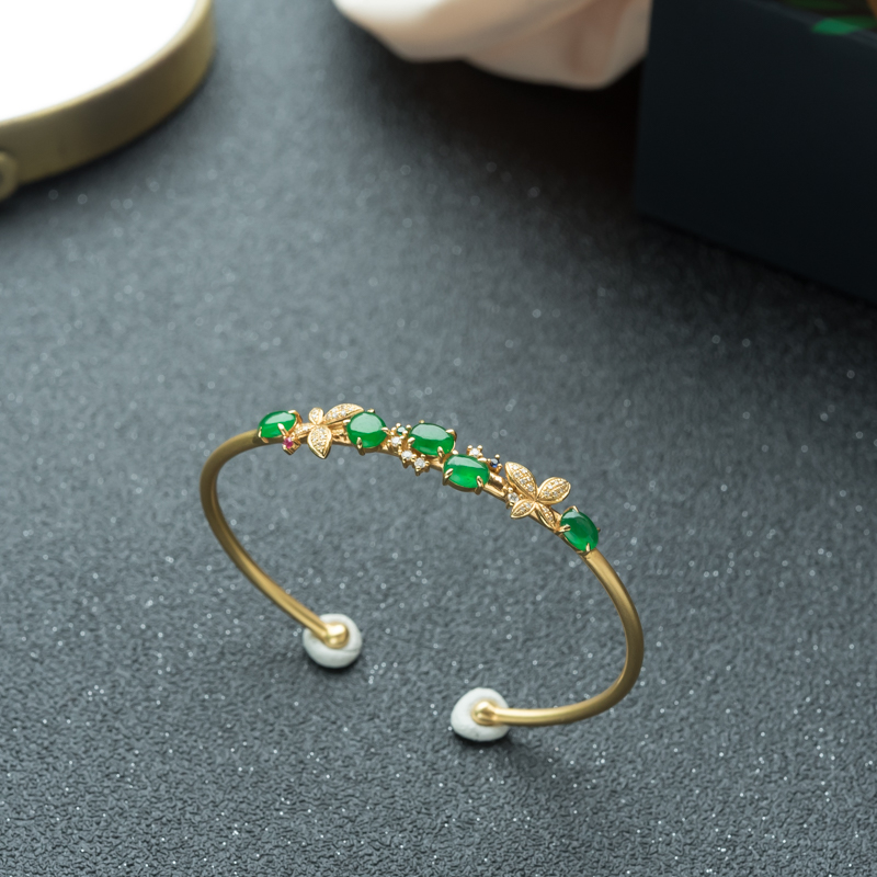 • 56.5mm18K糯冰种翠绿翡翠贵妃镯