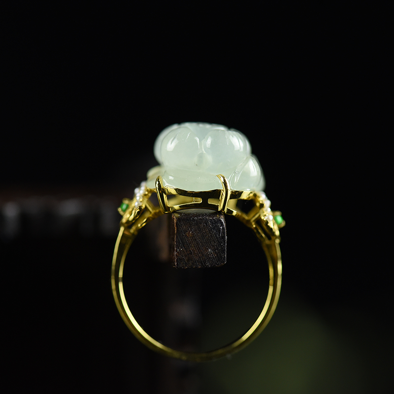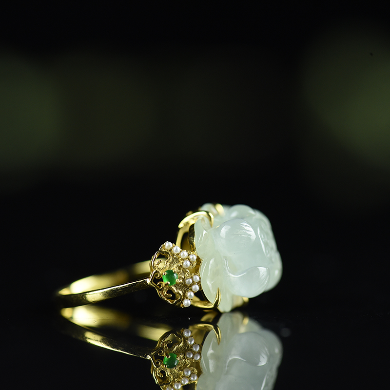 • [名  称] 18k金镶糯冰种翡翠花开富贵戒指