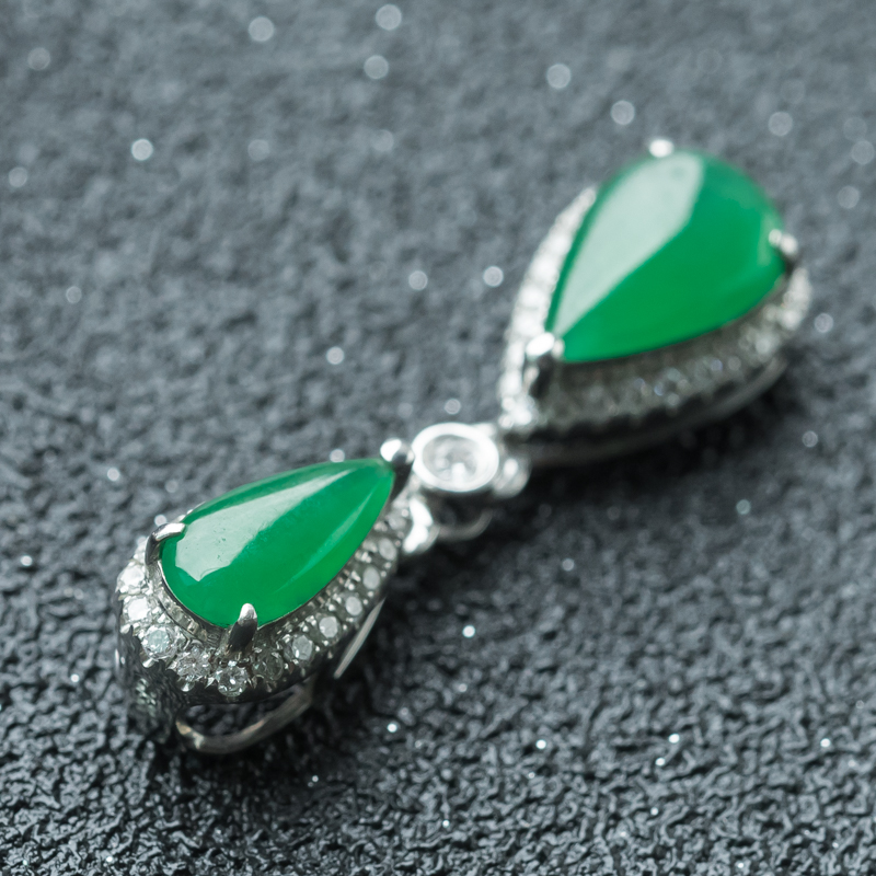 • 18K糯冰种翠绿翡翠水滴吊坠