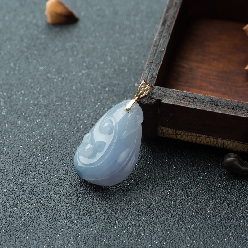 • 18K糯冰种紫罗兰翡翠如意吊坠