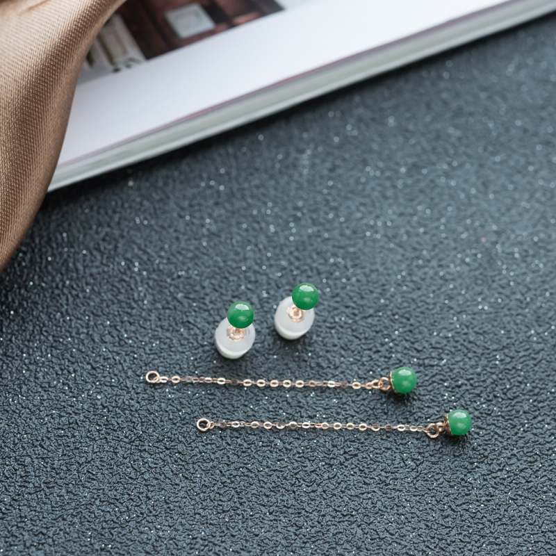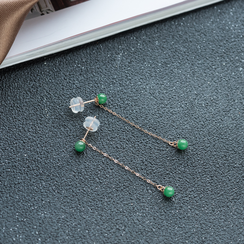 • [名  称] 18K糯冰种翠绿翡翠耳坠