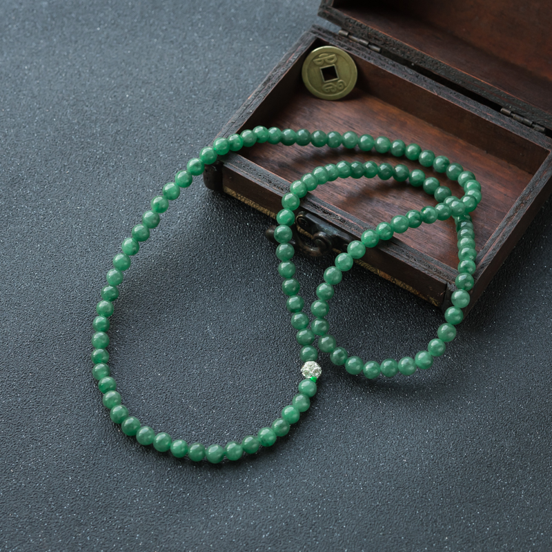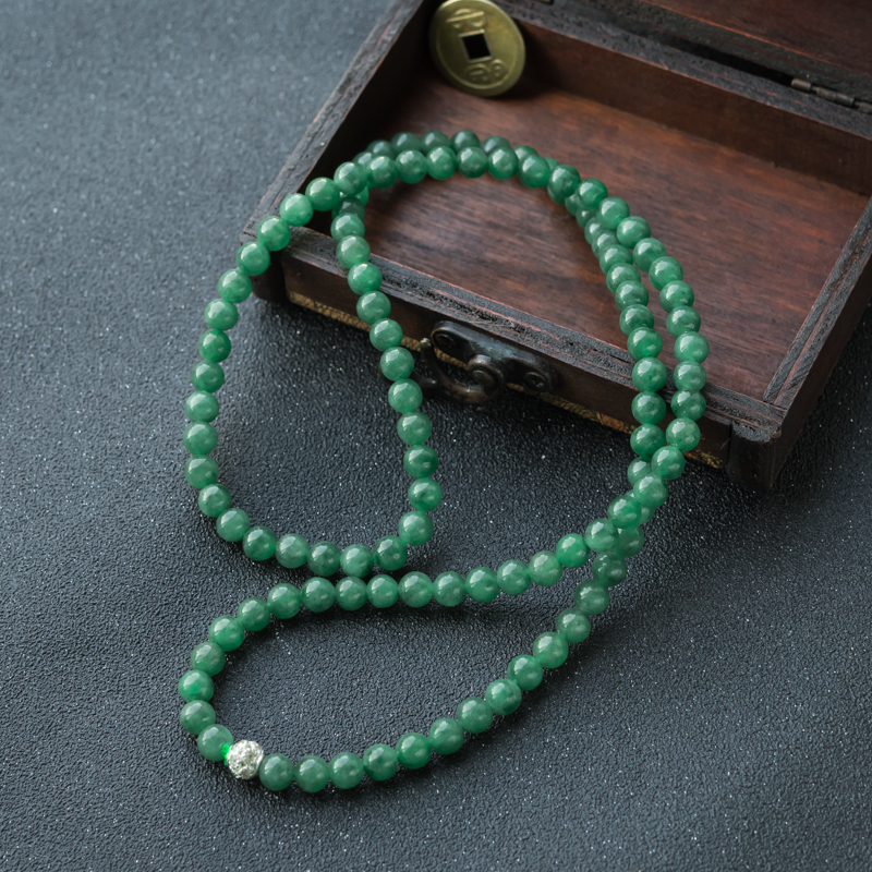 • 6.5mm糯冰种深绿翡翠108佛珠