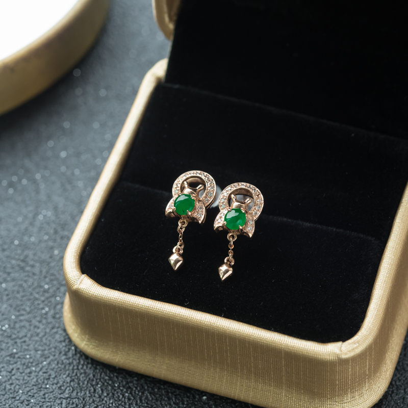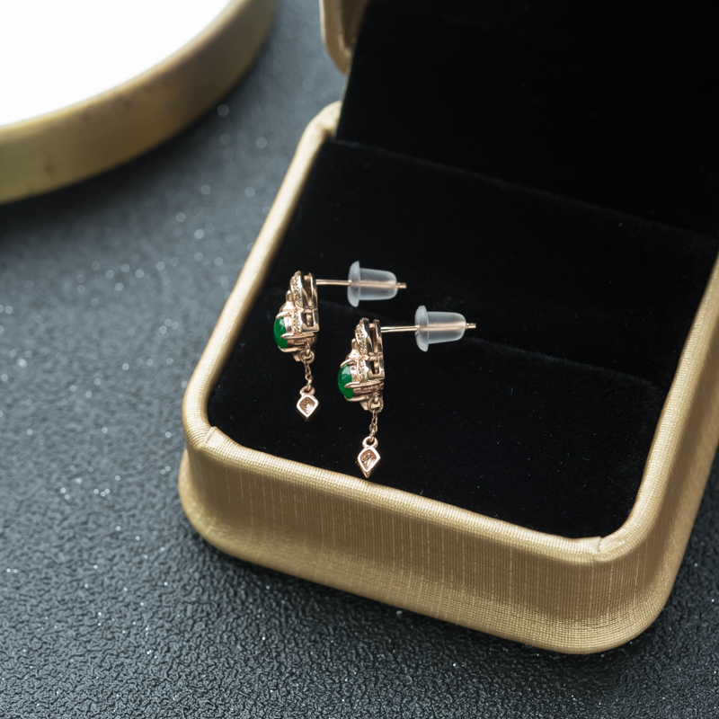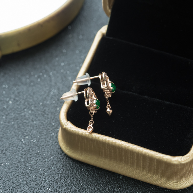 • [名  称] 18K糯冰种翠绿翡翠耳钉