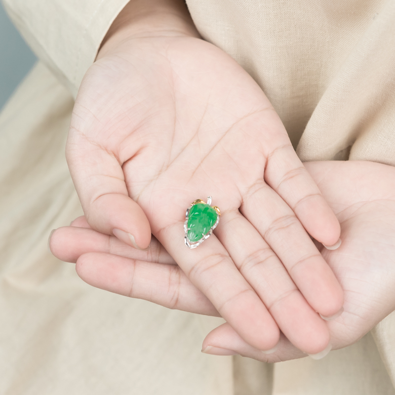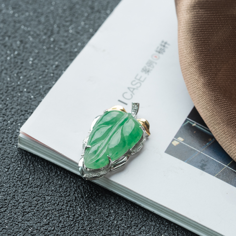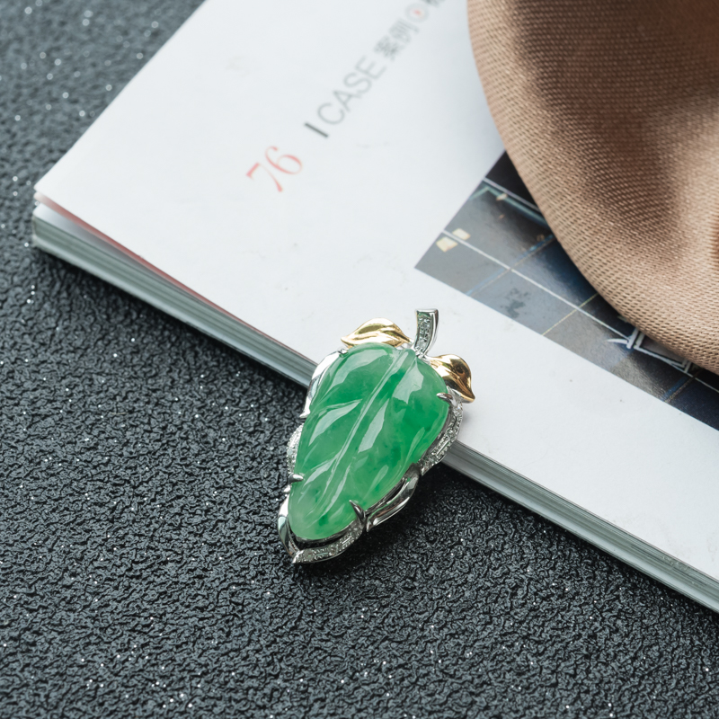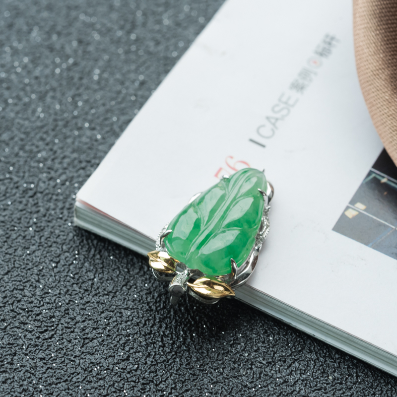 • 18K糯冰种飘翠翡翠金枝玉叶吊坠