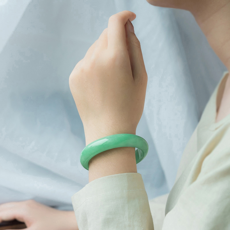 • [名  称] 57mm糯冰种苹果绿翡翠平安镯