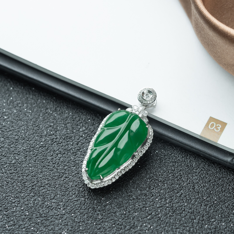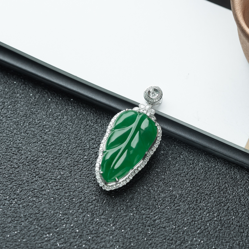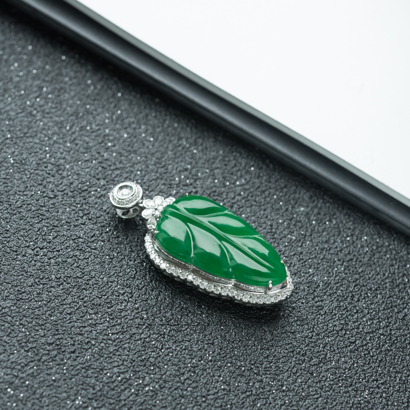• 18K糯冰种翠绿翡翠金枝玉叶吊坠