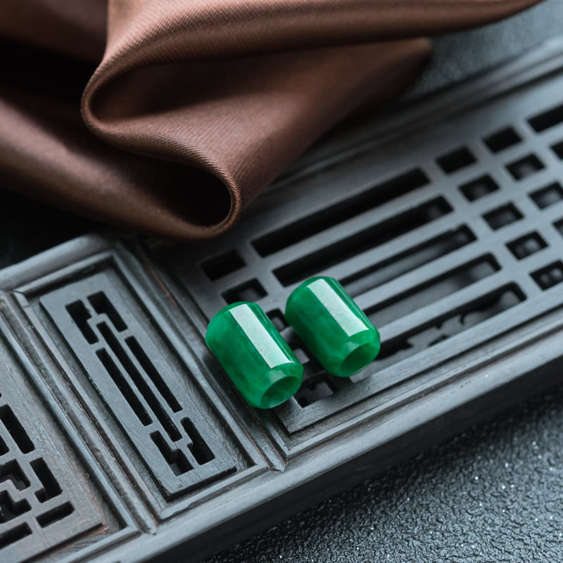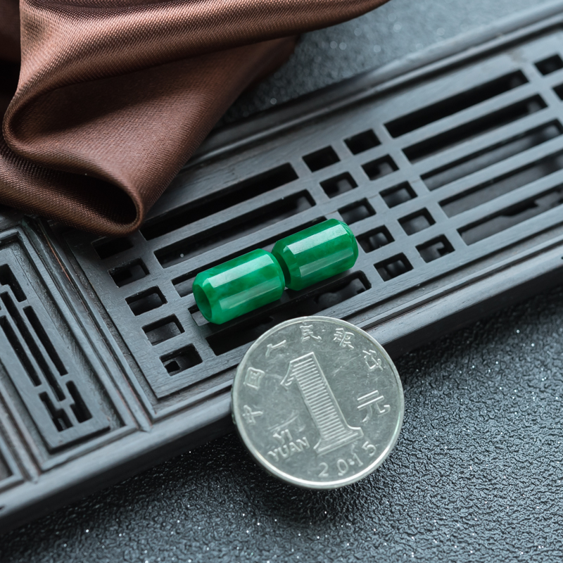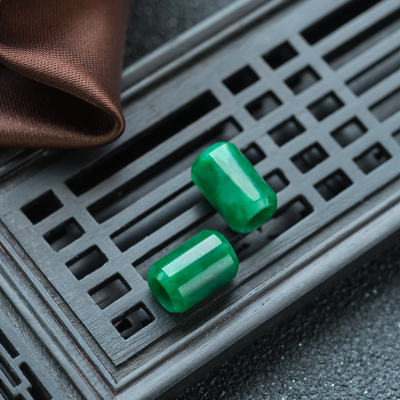 • 糯冰种翠绿翡翠路路通吊坠(一对)
