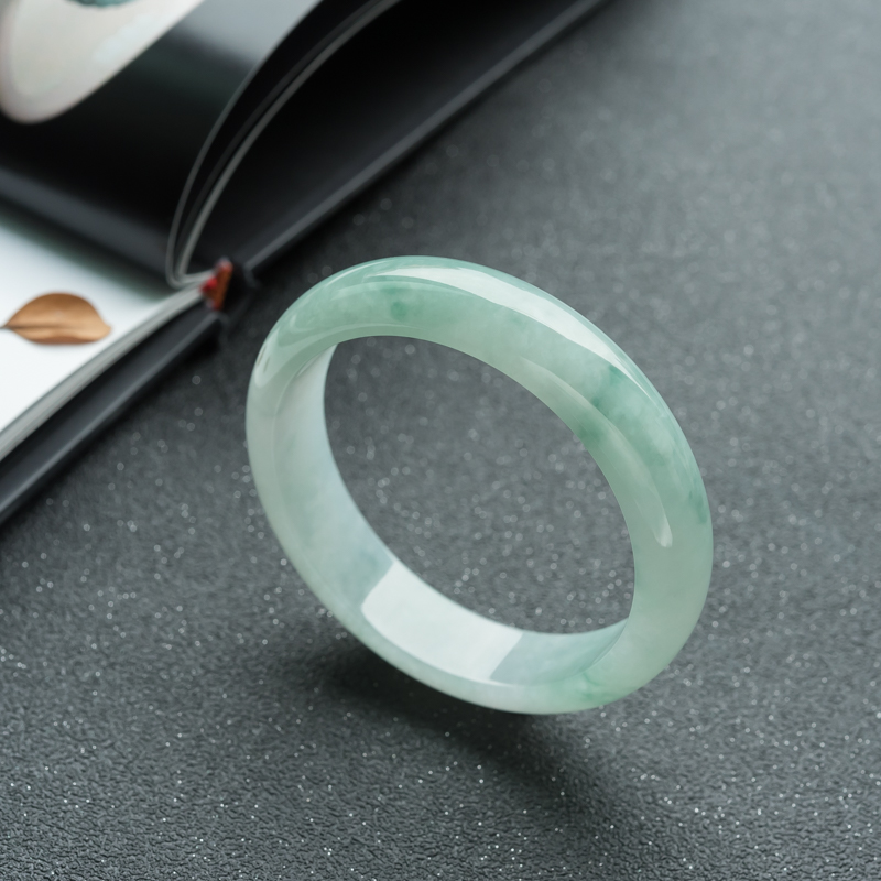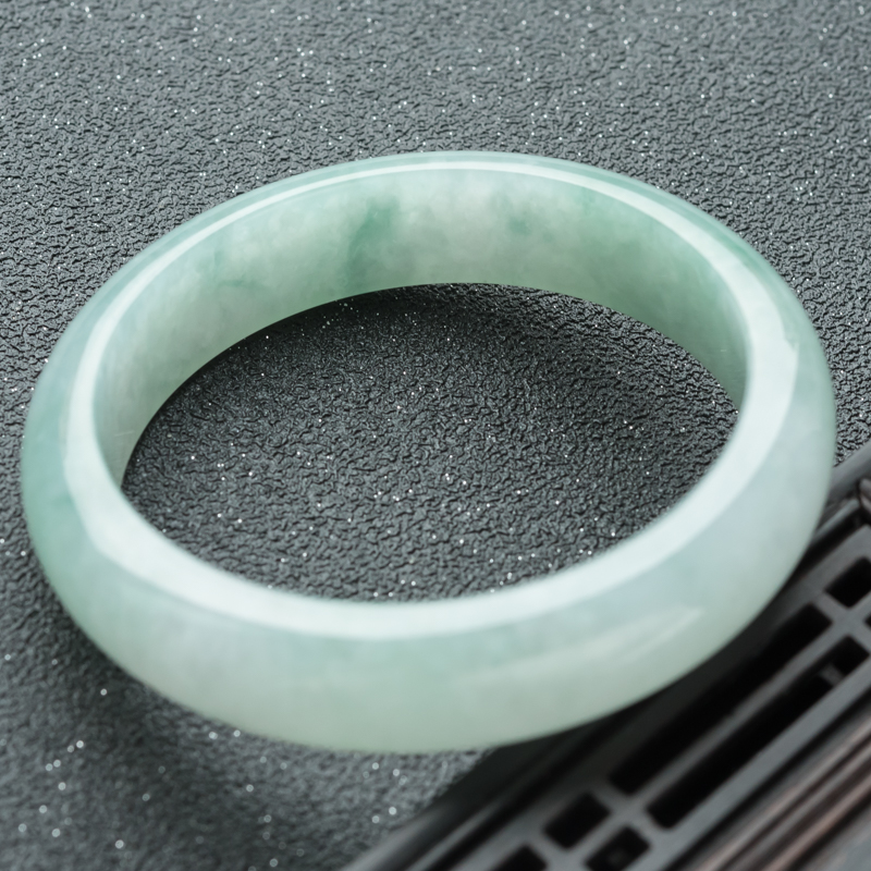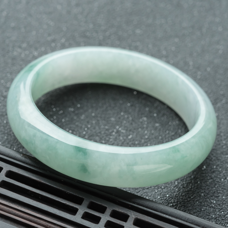 • [名  称] 58.5mm糯冰种飘翠翡翠平安镯