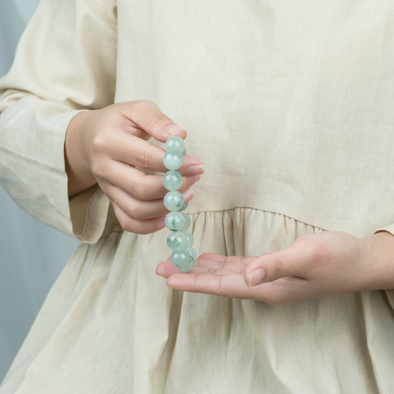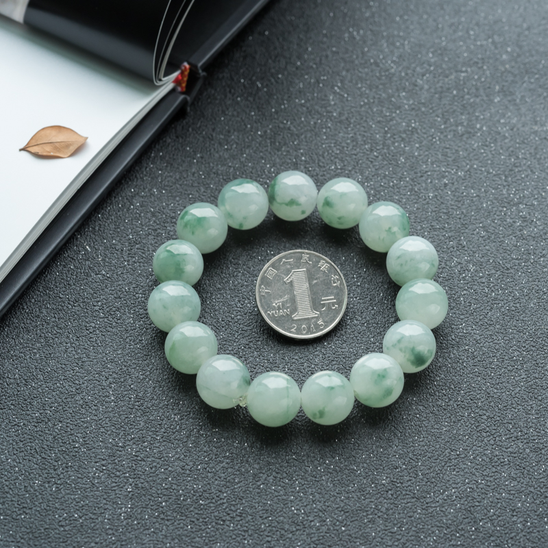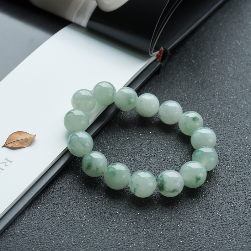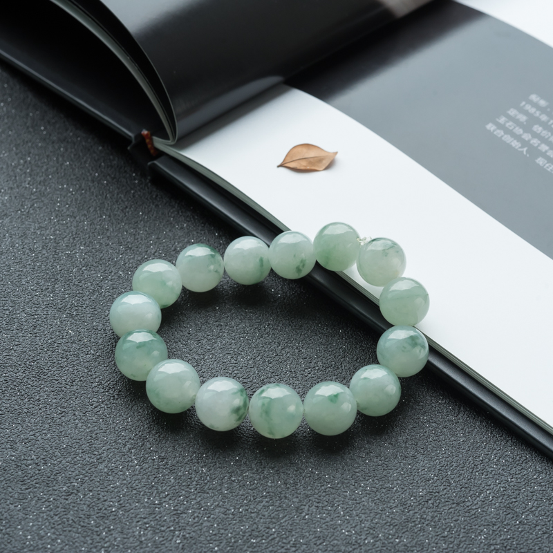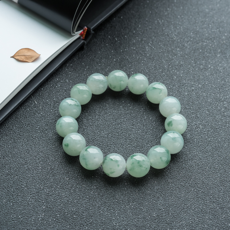 • 13mm糯冰种飘花翡翠单圈手串
