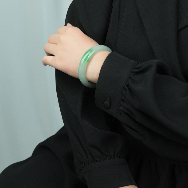• [名  称] 57mm糯冰种飘翠翡翠平安镯