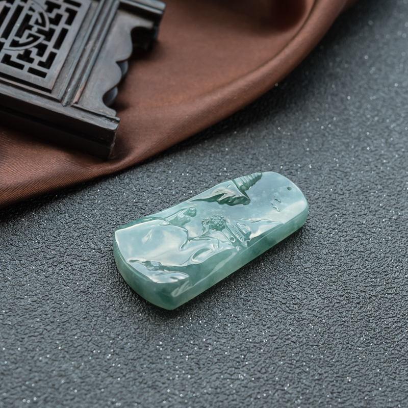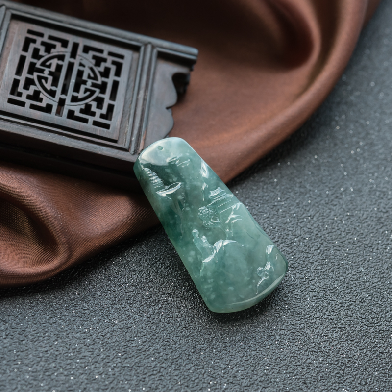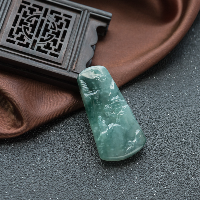 • [名  称] 糯冰种飘花翡翠青山远黛吊坠