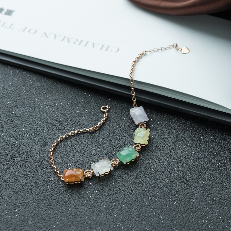 • [名  称] 18K糯冰种翡翠亥猪手链