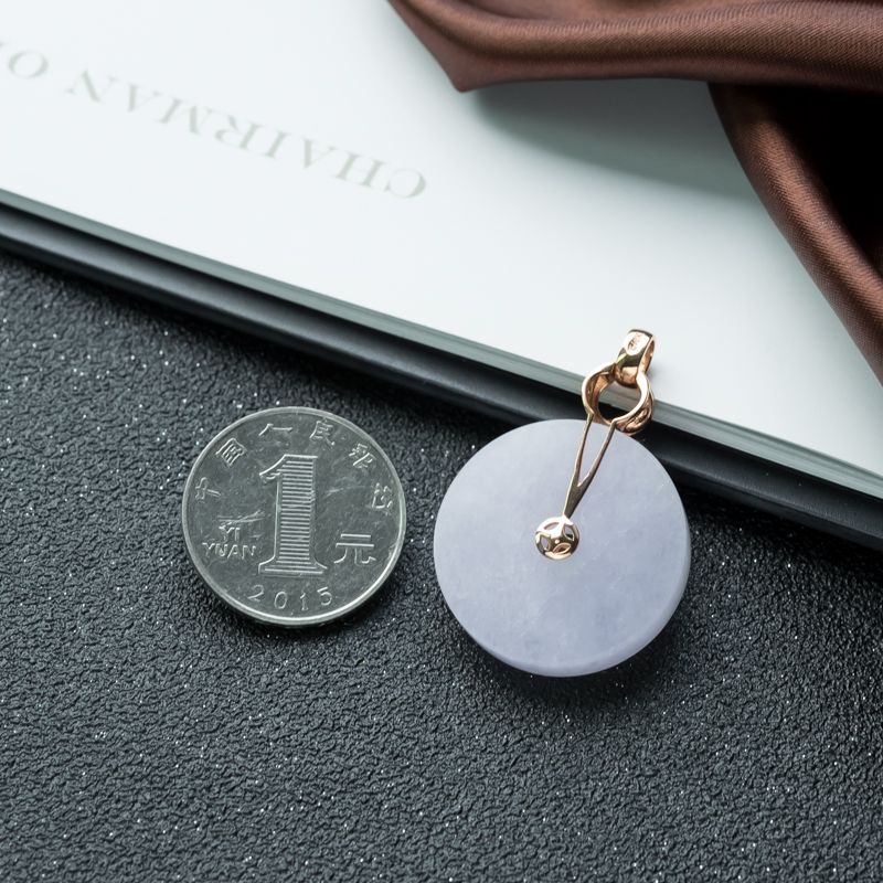 • 18K糯冰种浅紫翡翠平安扣吊坠