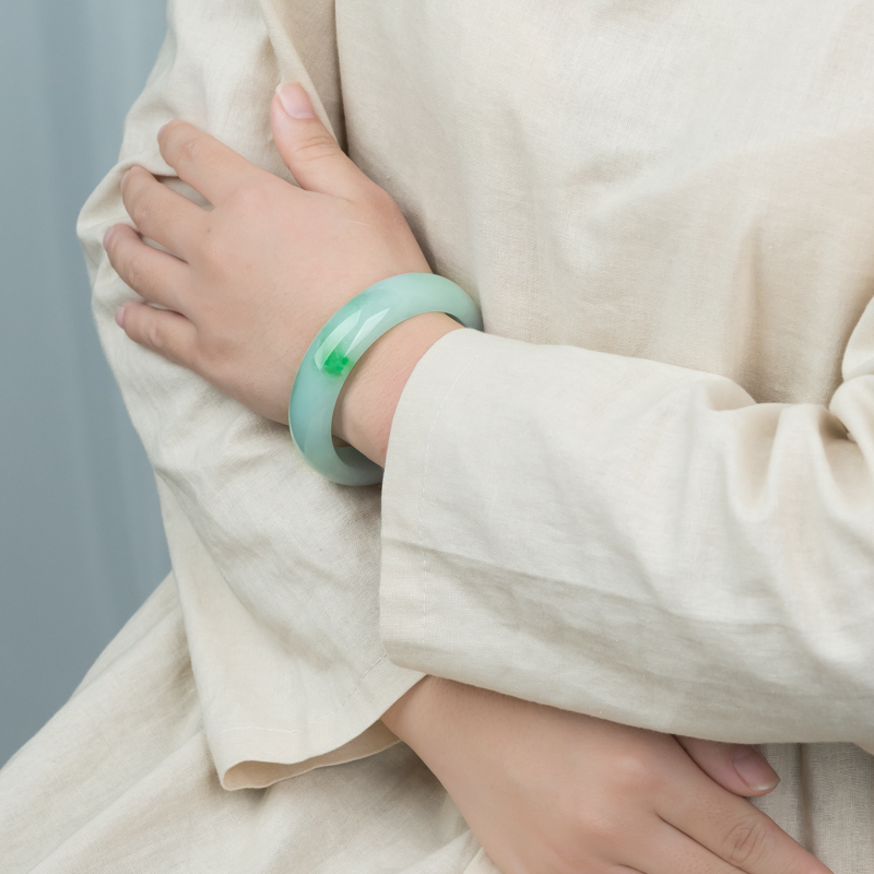 • [名  称] 56.5mm糯冰种飘翠翡翠平安镯