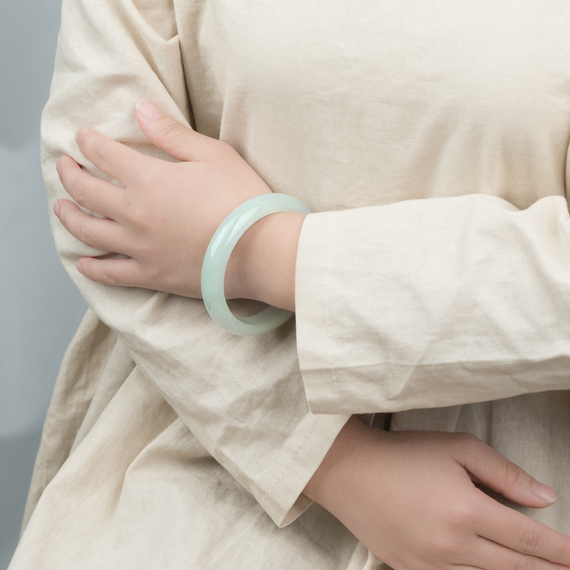 • 61.5mm糯冰种浅绿翡翠平安镯