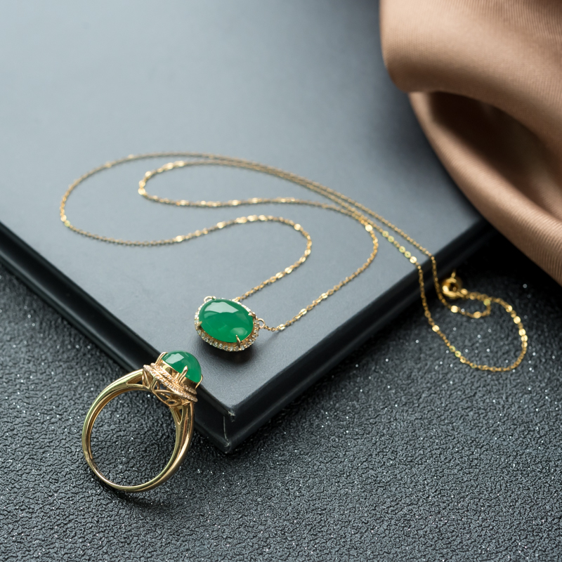 • [名  称] 18K糯冰种翠绿翡翠套装