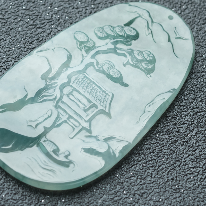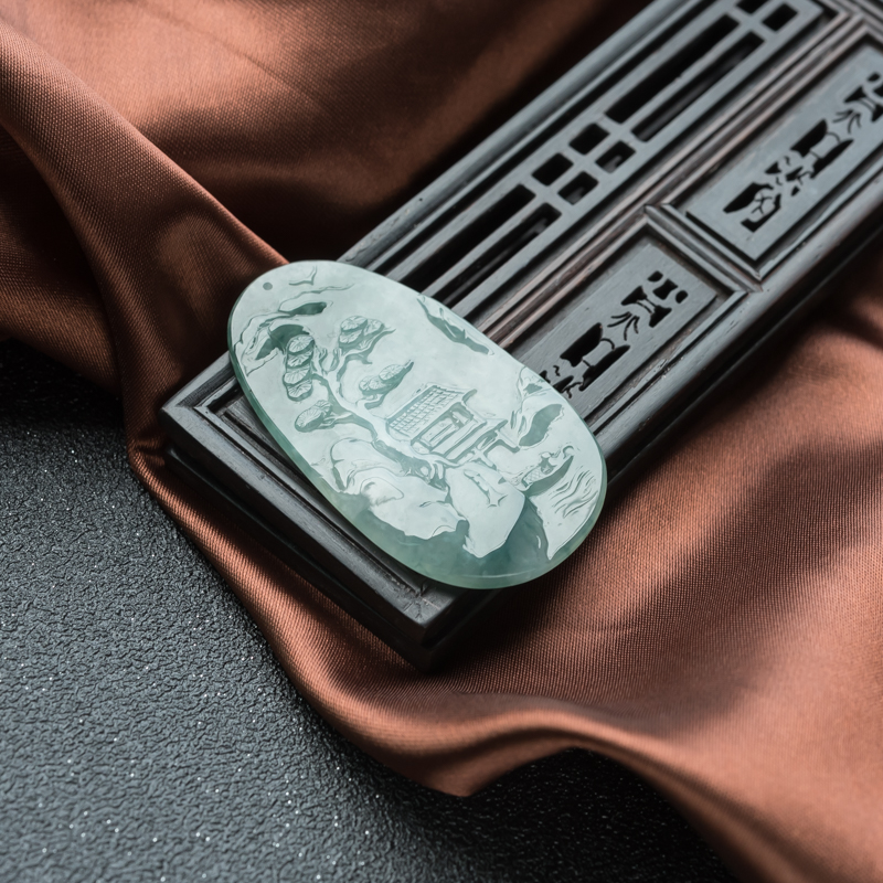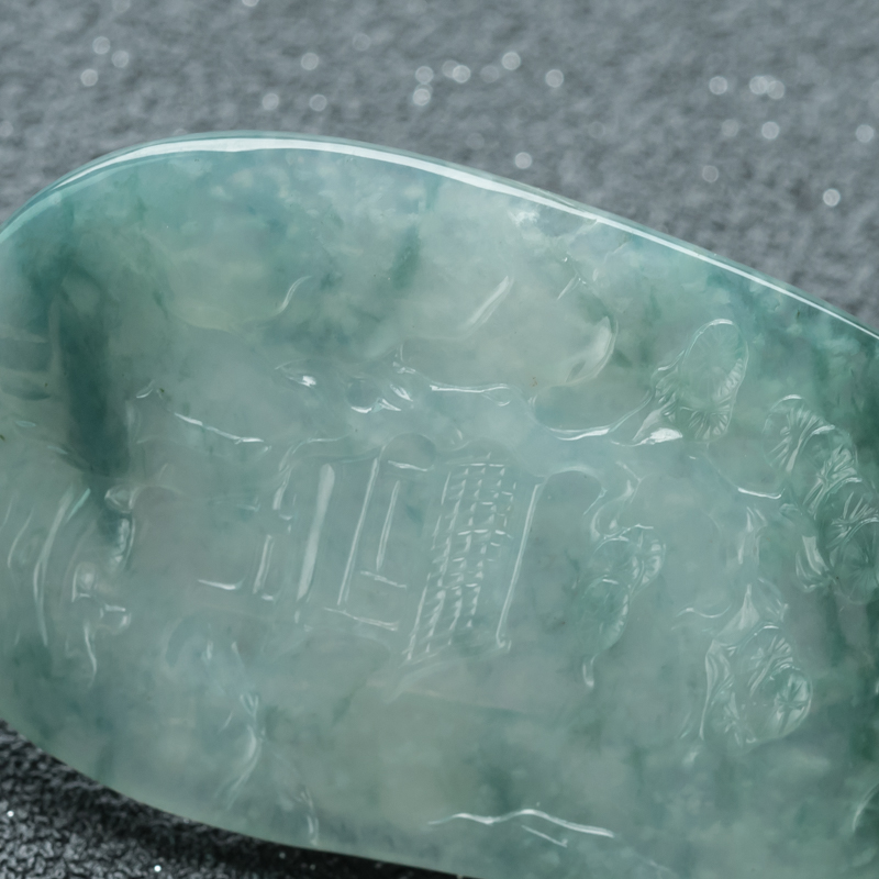 • 糯冰种飘花翡翠独钓寒江吊坠