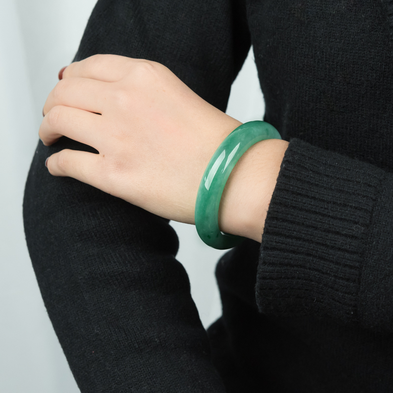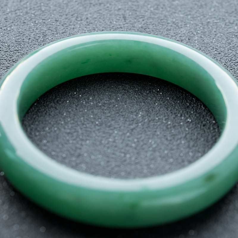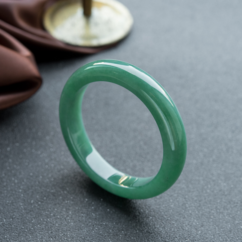 • 55.5mm糯冰种翠绿翡翠平安镯