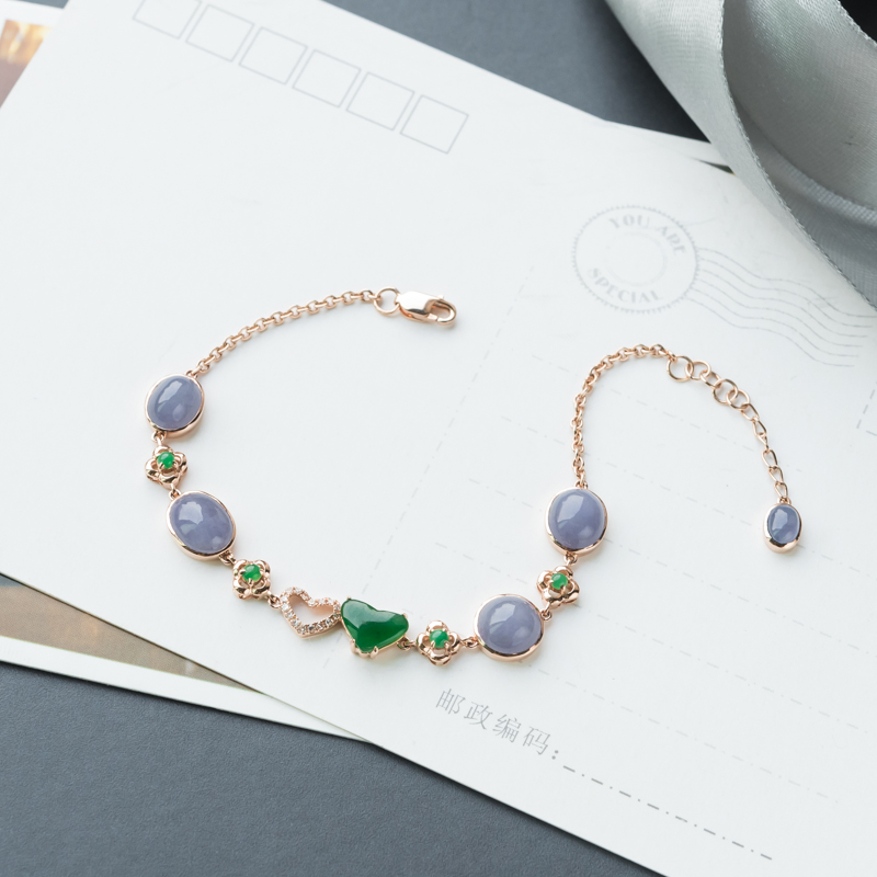 • 18K糯冰种翡翠手链