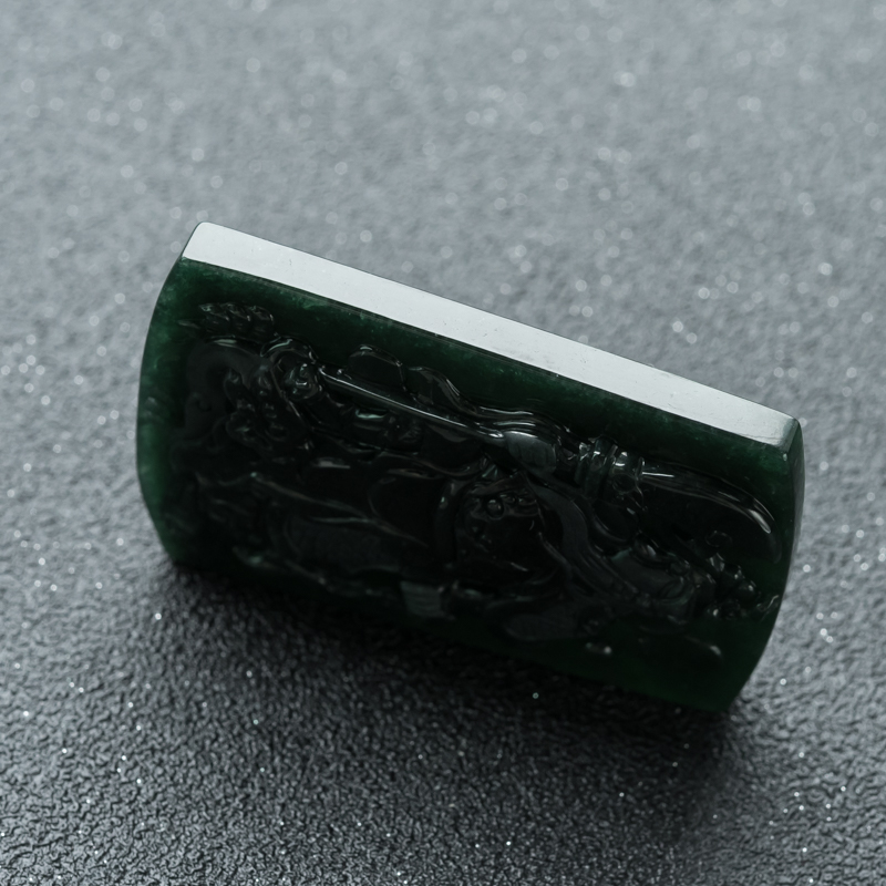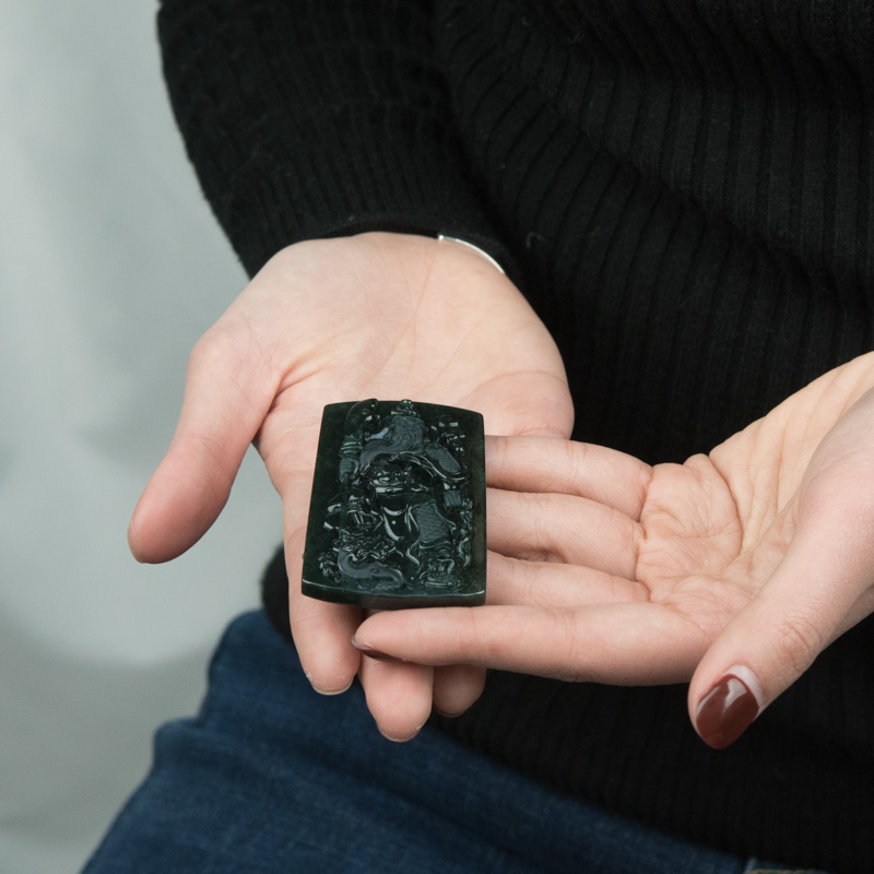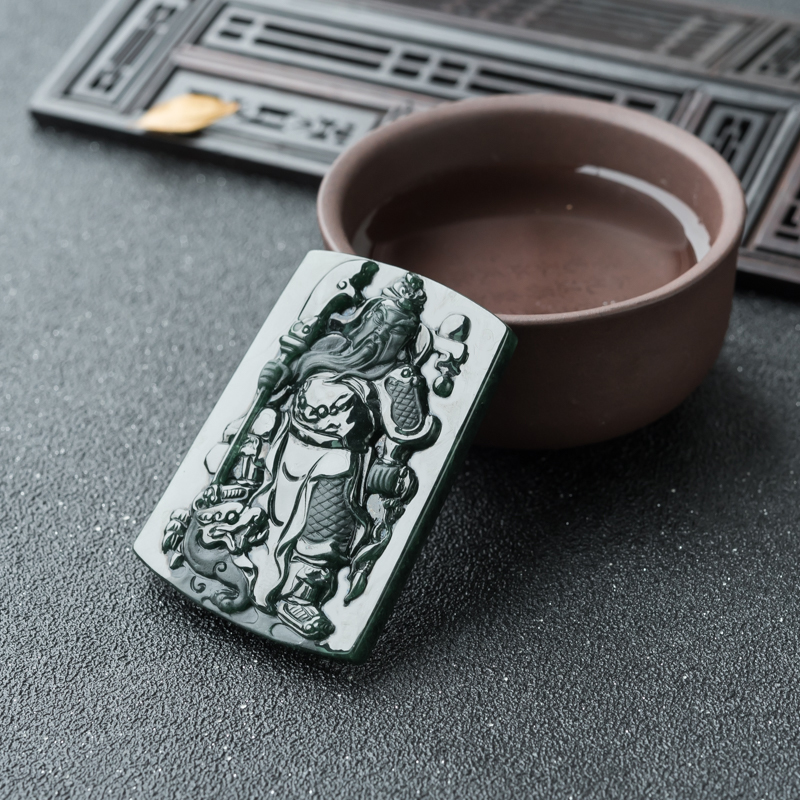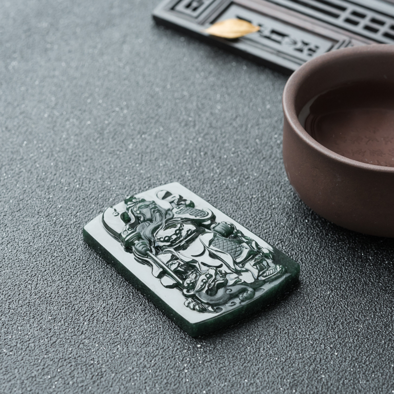 • 糯冰种墨翠关公吊坠