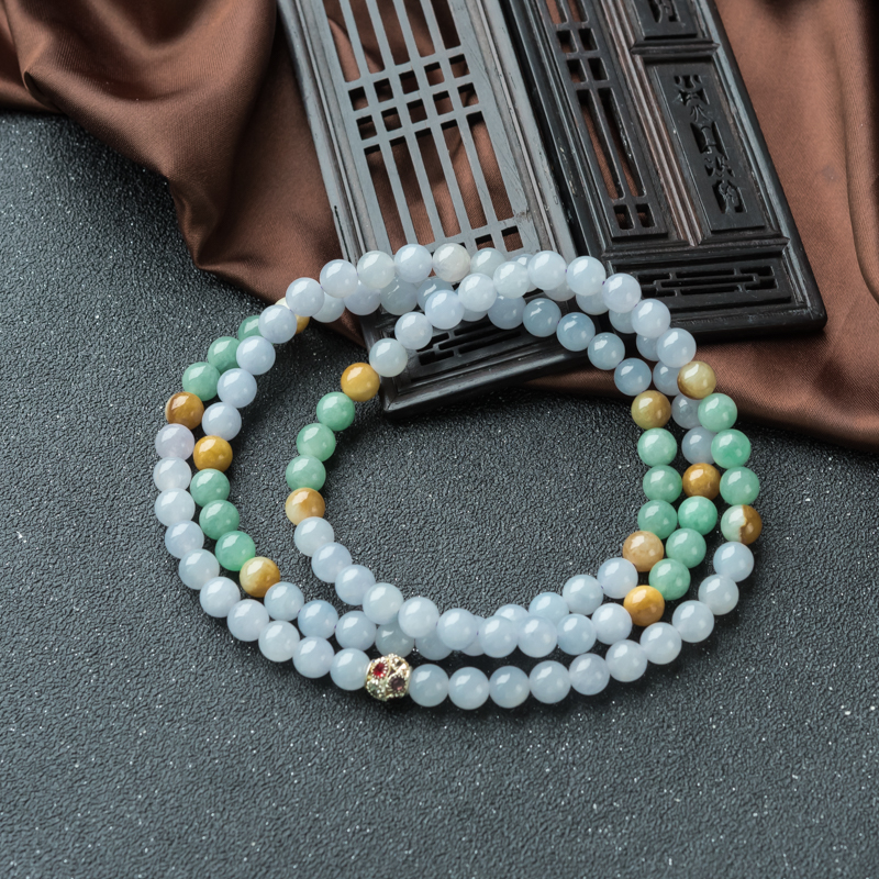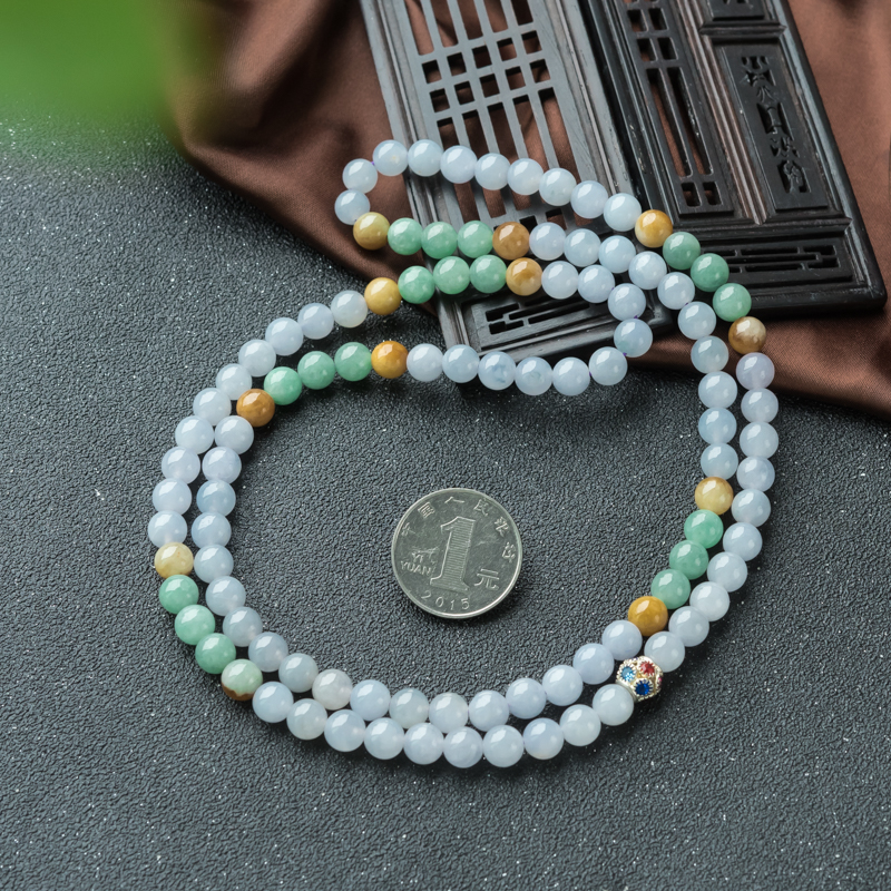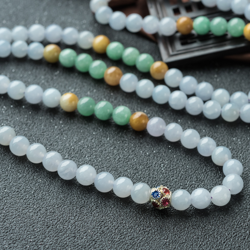 • [名  称] 7mm糯冰种翡翠108佛珠