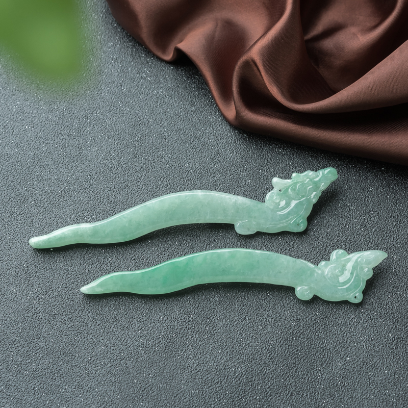 • [名  称] 糯冰种浅绿翡翠龙凤呈祥发簪(一对)
