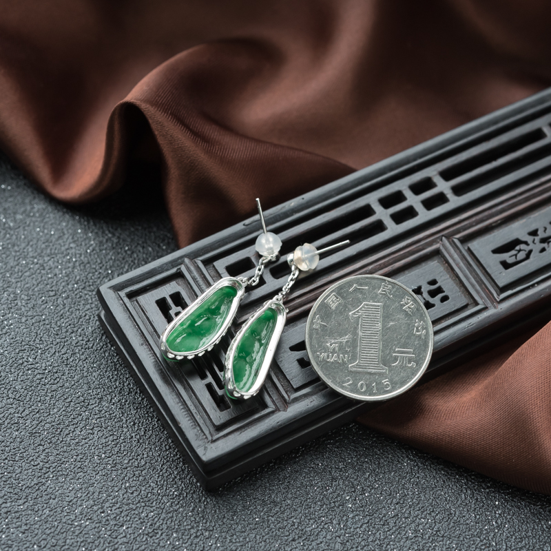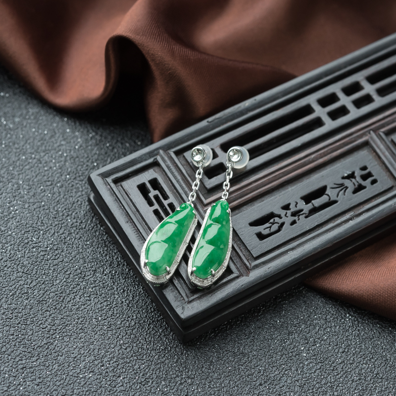 • [名  称] 18K糯冰种翠绿翡翠福豆耳坠